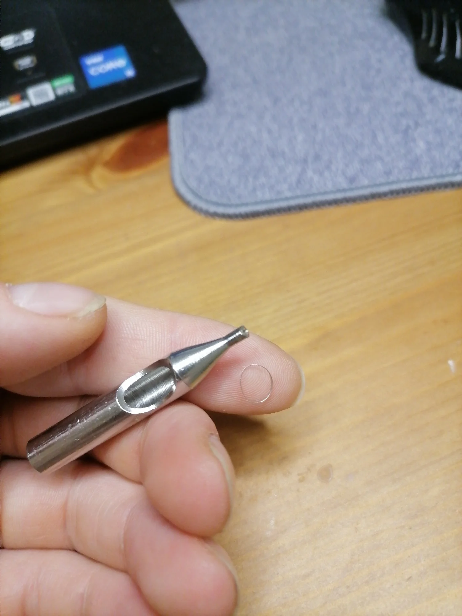 Заказал размер 5D приехал 3D (иглы 5м рядом с наконечник ом для сравнения), видимо надо было заказывать 7D, чтобы приехал нужный, сам наконечник плохо обработан, заводские косяки, сопло не пробито до конца, пришлось засверлить самому, внутри тоже не все гладко (вытащил колечко - есть на фото), просто так вставить иглу и начать работу не получится, придётся сначала повозиться. А вообще совет будущим покупателям закупать одноразовые, меньше возьни с ними