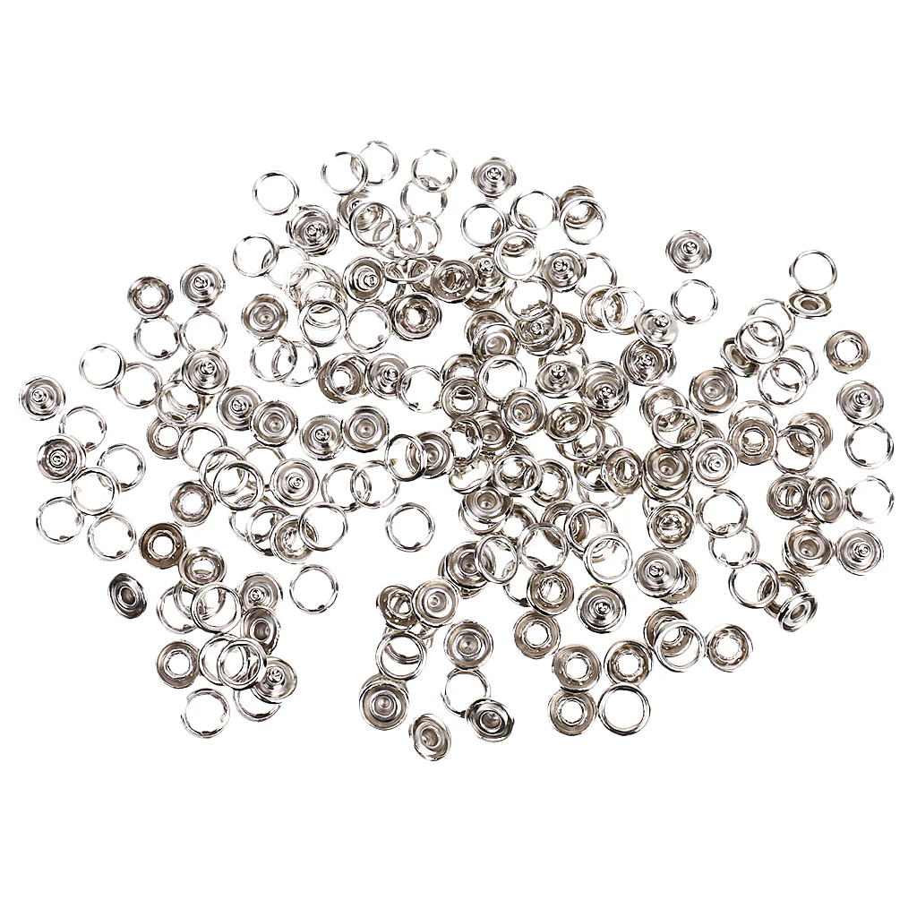 -50 наборов никелированного открытого кольца без пришивных защелок-Каждый набор состоит из 4 частей-1 гнездо, 1 штырь и 2 открытых кольца-Идеально подходит для изготовления держатели для сосок, зажимы для варежек, нагрудники, держатель игрушек или швейные проекты-Диаметр: прибл. 7/16 дюйма/11 мм-Материал: латунь-Цвет: серебристыйПосылка включает в себя: