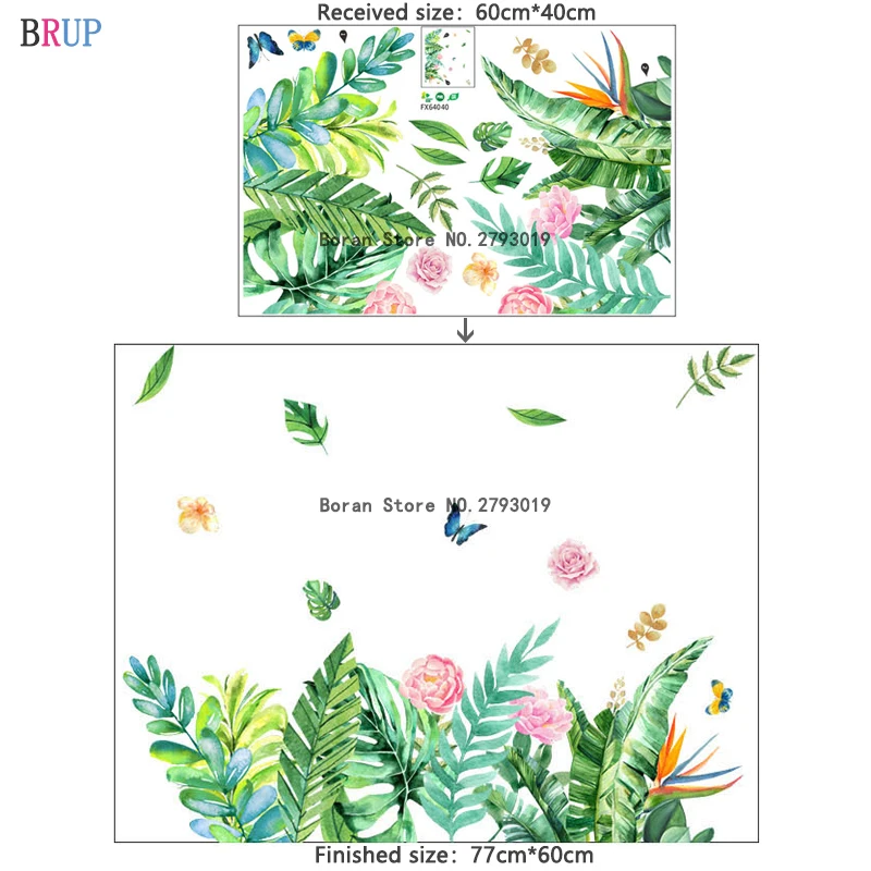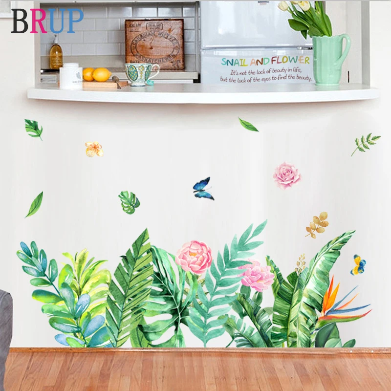 Свежий зеленый растений цветные настенные наклейки цветок домашний декор искусство листья обои красивая бабочка украшения комнаты Съемный