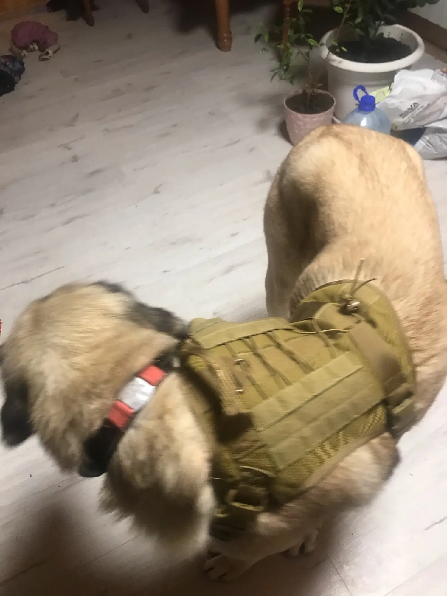 не понравилась шлейка , а именно как смотрится . куцая какая то . овчарка восточная 40 кг размер L