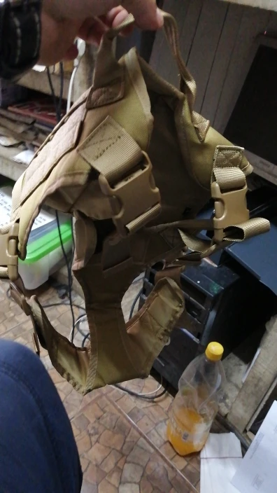 Шлейка пришла быстро , Получил в ТЦ "Пятерочка" , на почте РФии она бы еще долго ехала, а могла еще и потеряться. Вообщем товар крутой ! Качество пришитых лямок Отличное! Защелки все пластиковые, Но качественные. На верху изголовья Присутствует металлическая пластина с отверстием для застежки карабина. Также на шлейке расположена система МОЛЛИ для подвешивания и дальнейшей транспортировки различных мелких грузов ,сумок, подсумков : например Аптечки. Сам поводок с двумя ручками, короткая и длинная. . Поводок выполнен из динамической стропы( получается своего рода амортизатор) зачехленный в чехол из камуфляжной материи и соответственной качественный металлический карабин. ! Спасибо Продавцу за шеврон «security»