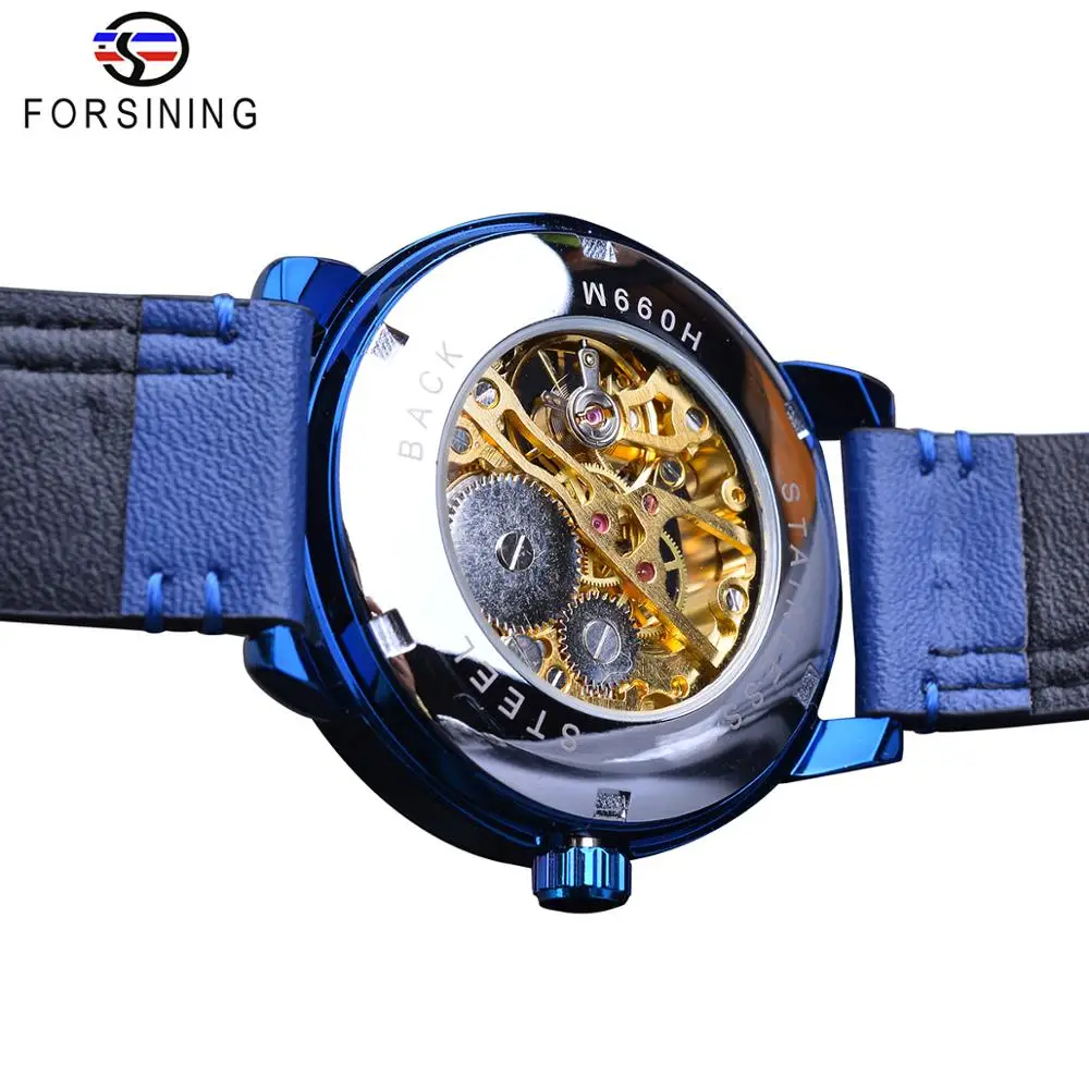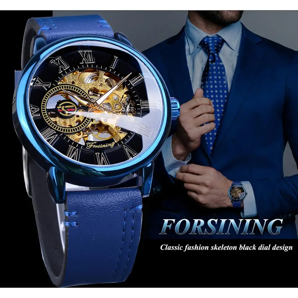 Forsining Мужские механические часы, прозрачные, синие, ультратонки...