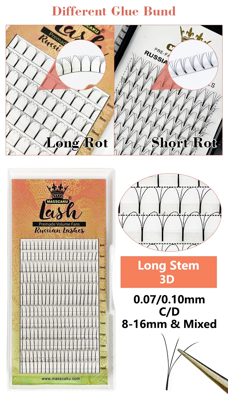 MASSCAKU оптовая продажа готовые русские объемные вееры 2d3d4d5d6d ресницы с длинным стержнем готовые ресницы для наращивания