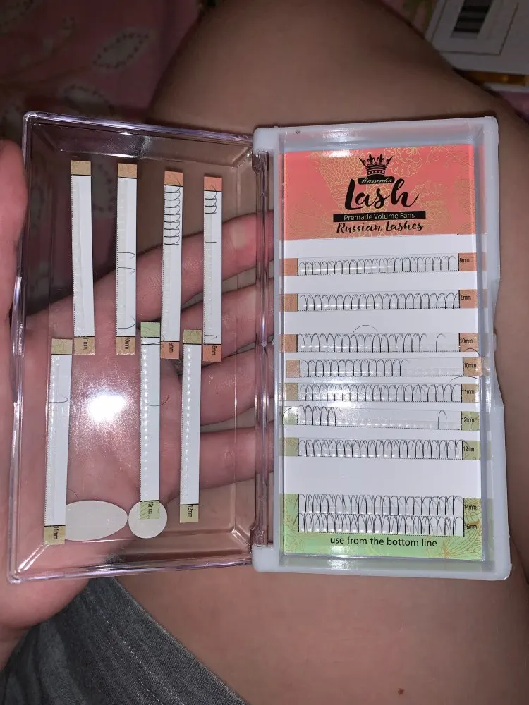 Заказ прибыл очень быстро к сожалению после месяца только сейчас делала 1-ю работу мне очень понравилось ресничек конечно немного но работать очень легко На фото я выставила объем 3 d