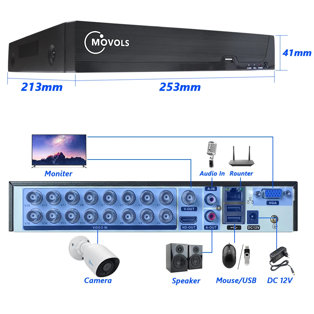 Movols penta-brid full HD рекордер интегрированный самоадаптивный режим для подключения всех типов камер (аналог, AHD,TVI,CVI и IPC), на основе этой передовой технологии, система будет записывать видео 1080P для всех камер