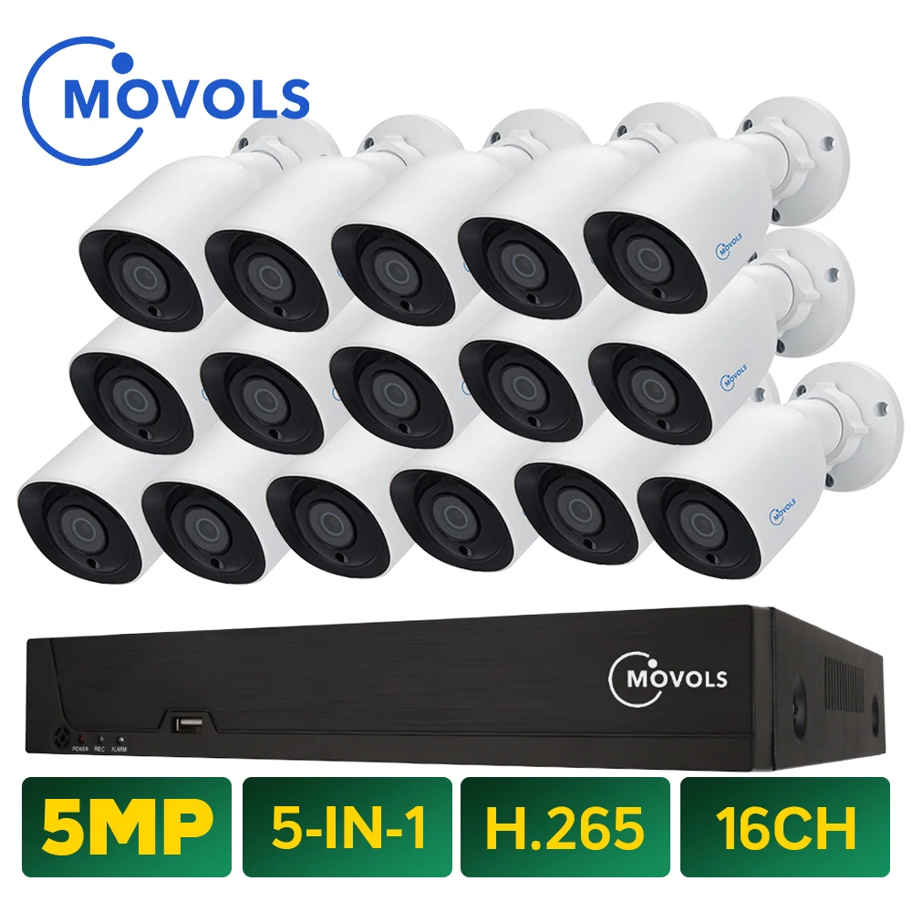 Система видеонаблюдения MOVOLS, 5 МП, 16 каналов, H.265, XVR, HD, 16x5 Мп, 2560*1920, HD