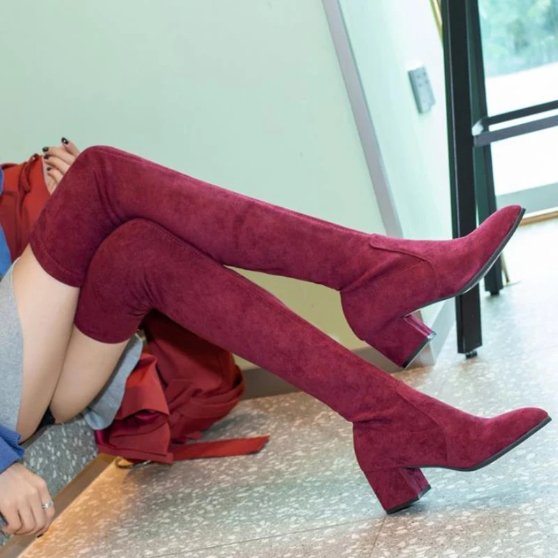 Женские сапоги выше колена, зимние универсальные сапоги с острым носком, 2020