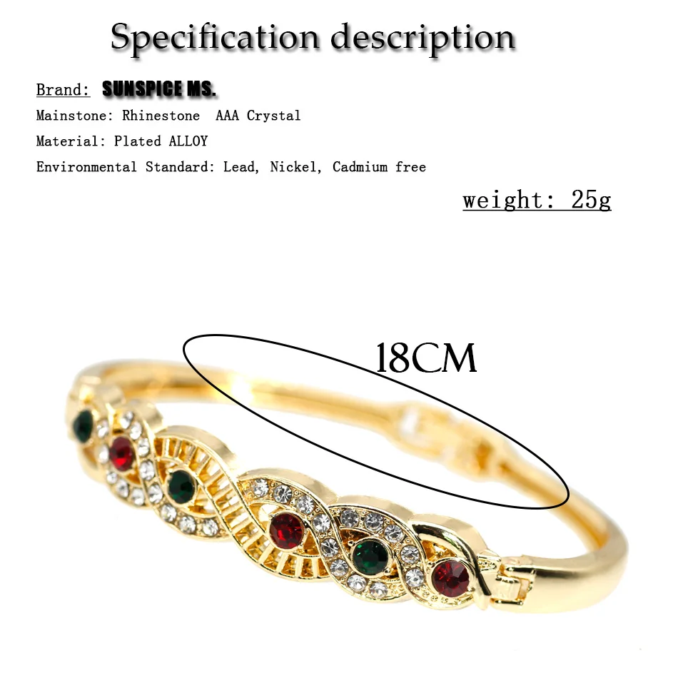 Женский Браслет-манжета Sunspicems, тонкий свадебный ювелирный браслет золотого цвета в этническом стиле, стразы Дубай, свадебный подарок, оптовая продажа