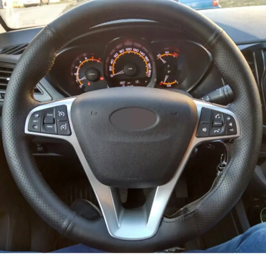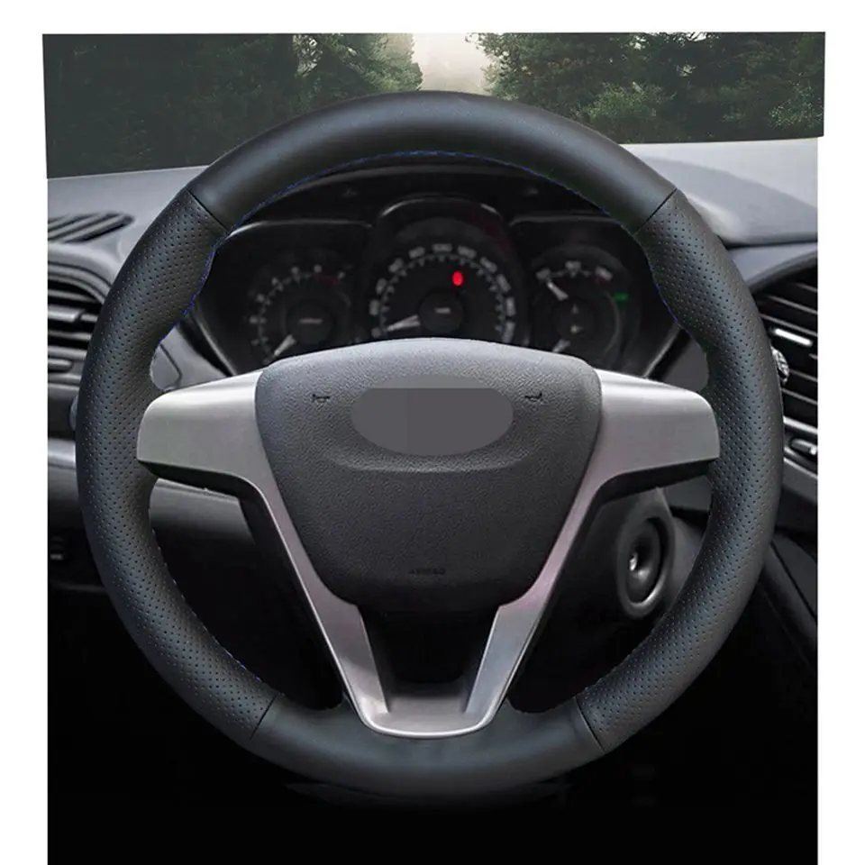 Кожаный чехол ручной работы для Lada Vesta 2015, чехол рулевого колеса автомобиля, 2016, 2017, 2018, Xray 2015-2019, черный