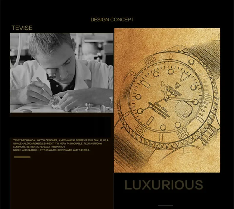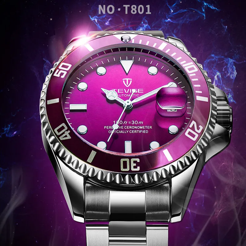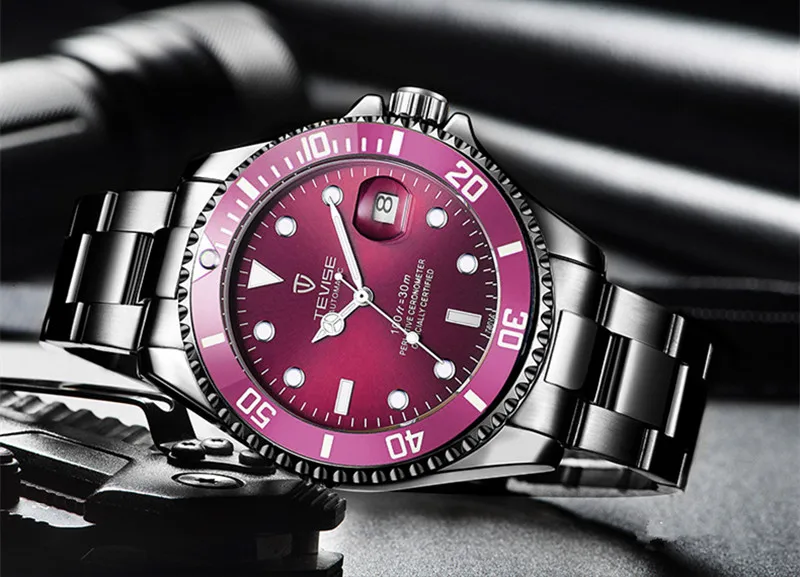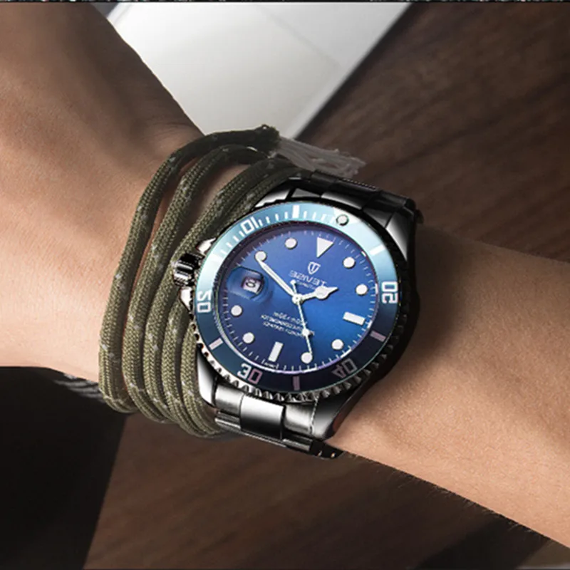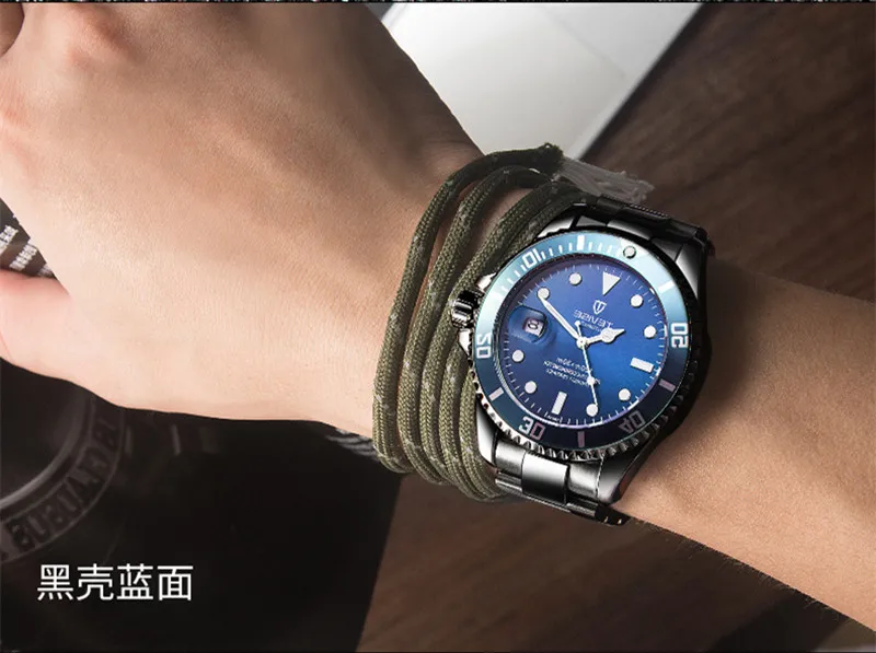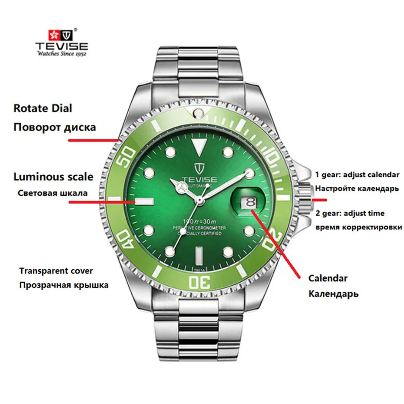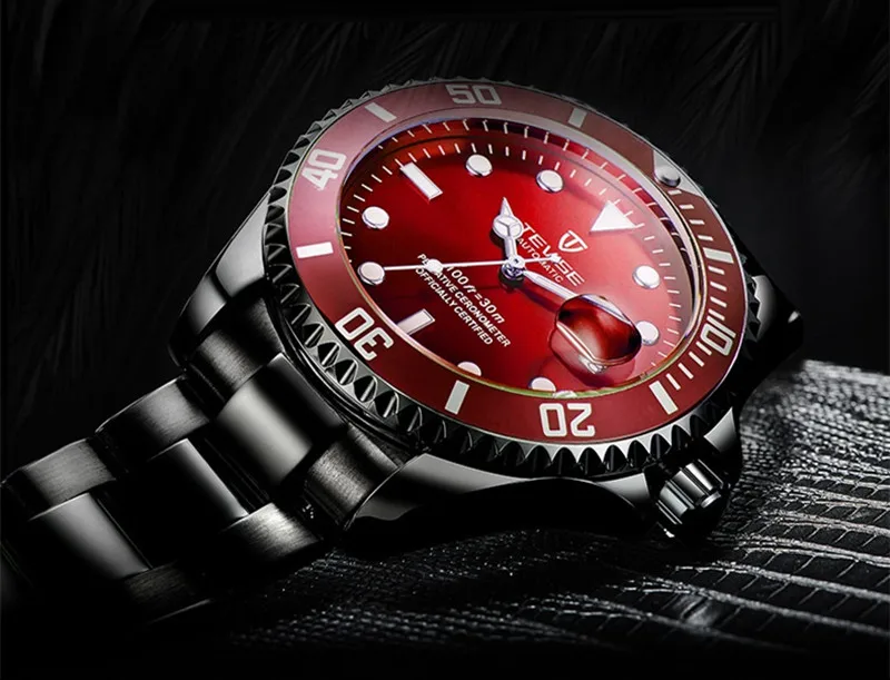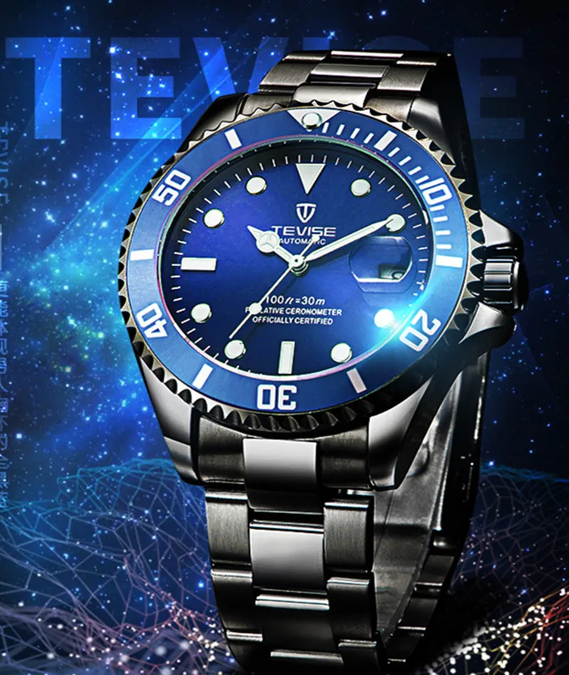 Часы наручные TEVISE Мужские автоматические, роскошные механические водонепроницаемые светящиеся, с календарем, черные