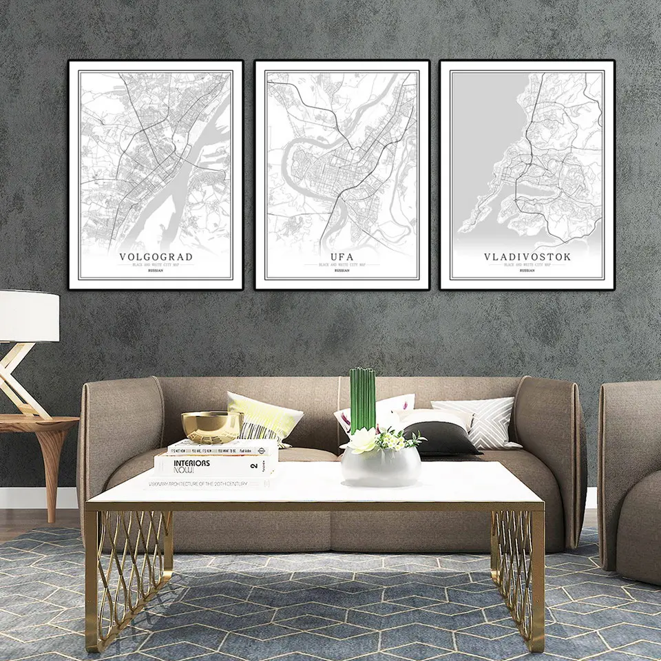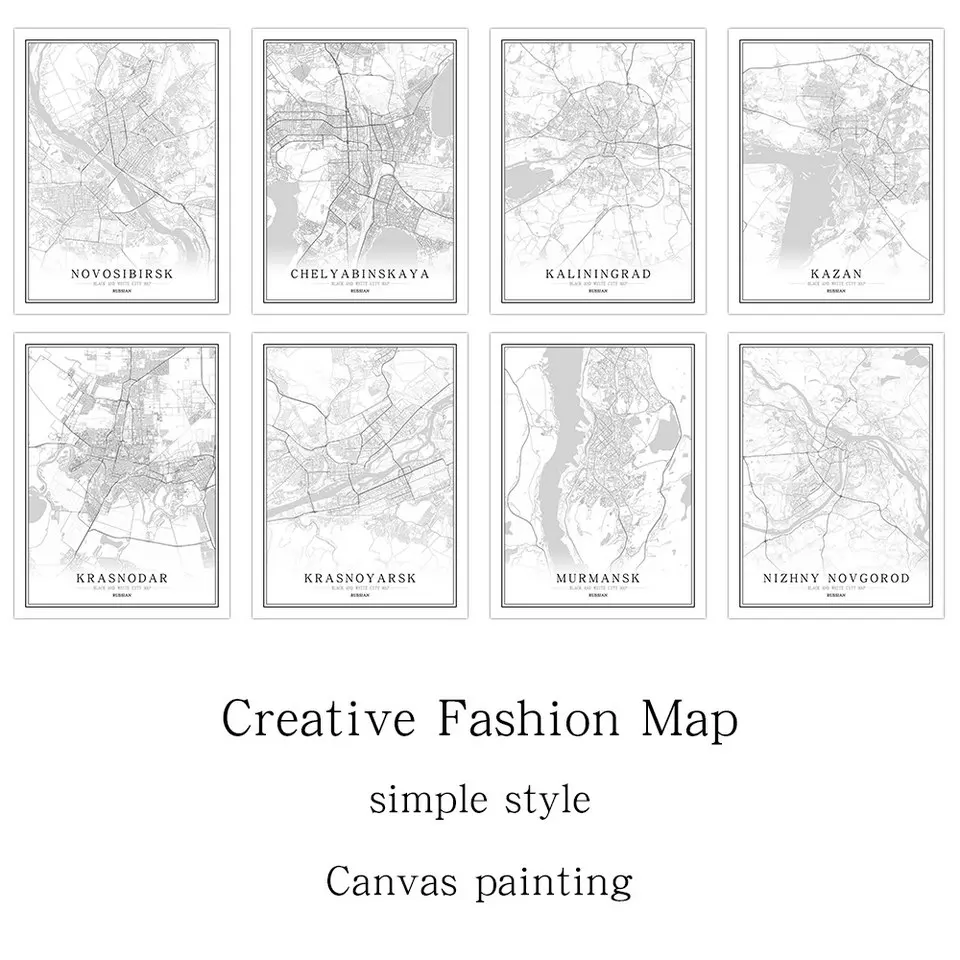 Постер на русском, черно-белый, карта городов мира год, скандинавский стиль, для гостиной, Москвы, Пскова, Омской Пермской стены, картины для домашнего декора, Картина на холсте