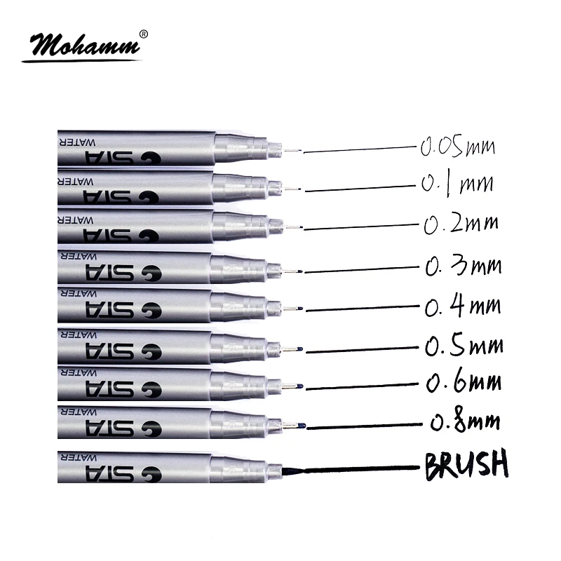 Ручка Микронная водостойкая STA 9 разных размеров, тонкий лайнер, ч...