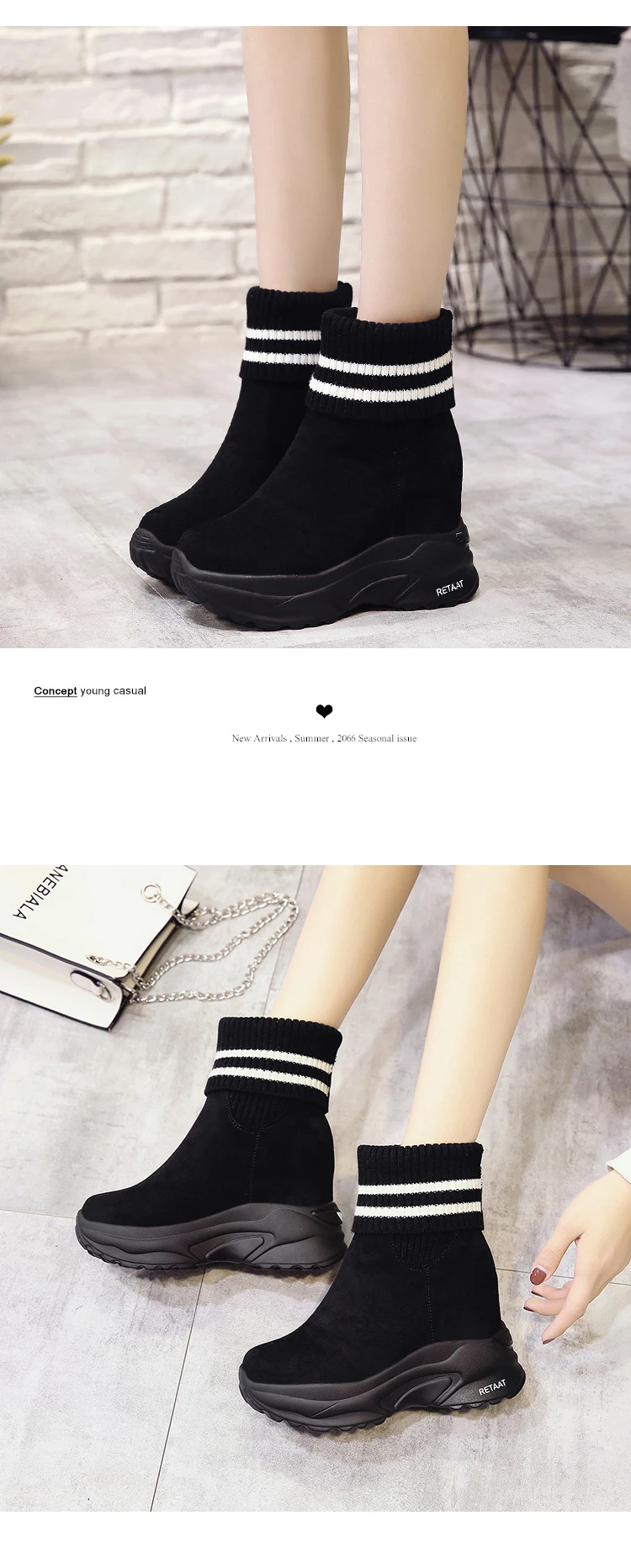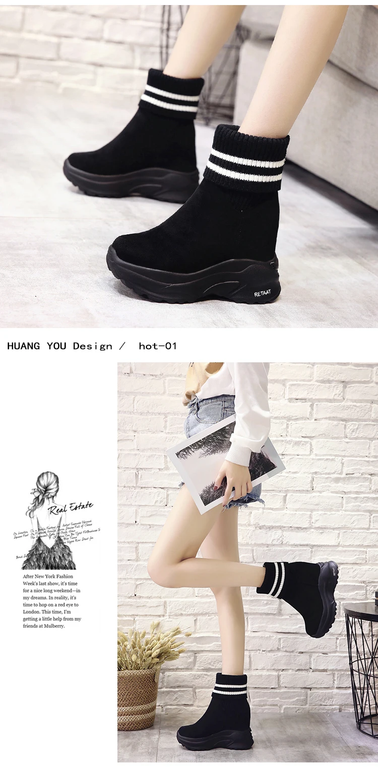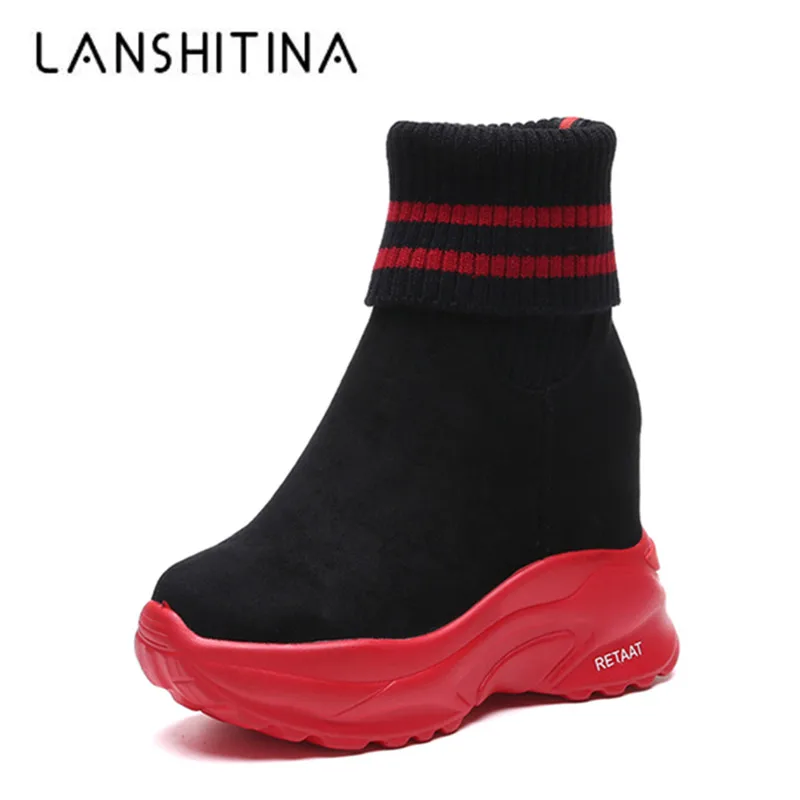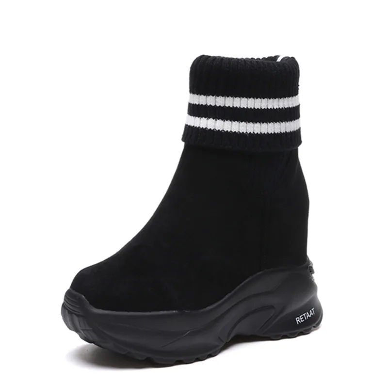 Женские ботинки на платформе, осенне-зимние короткие ботинки из флока, Нескользящие, 2020