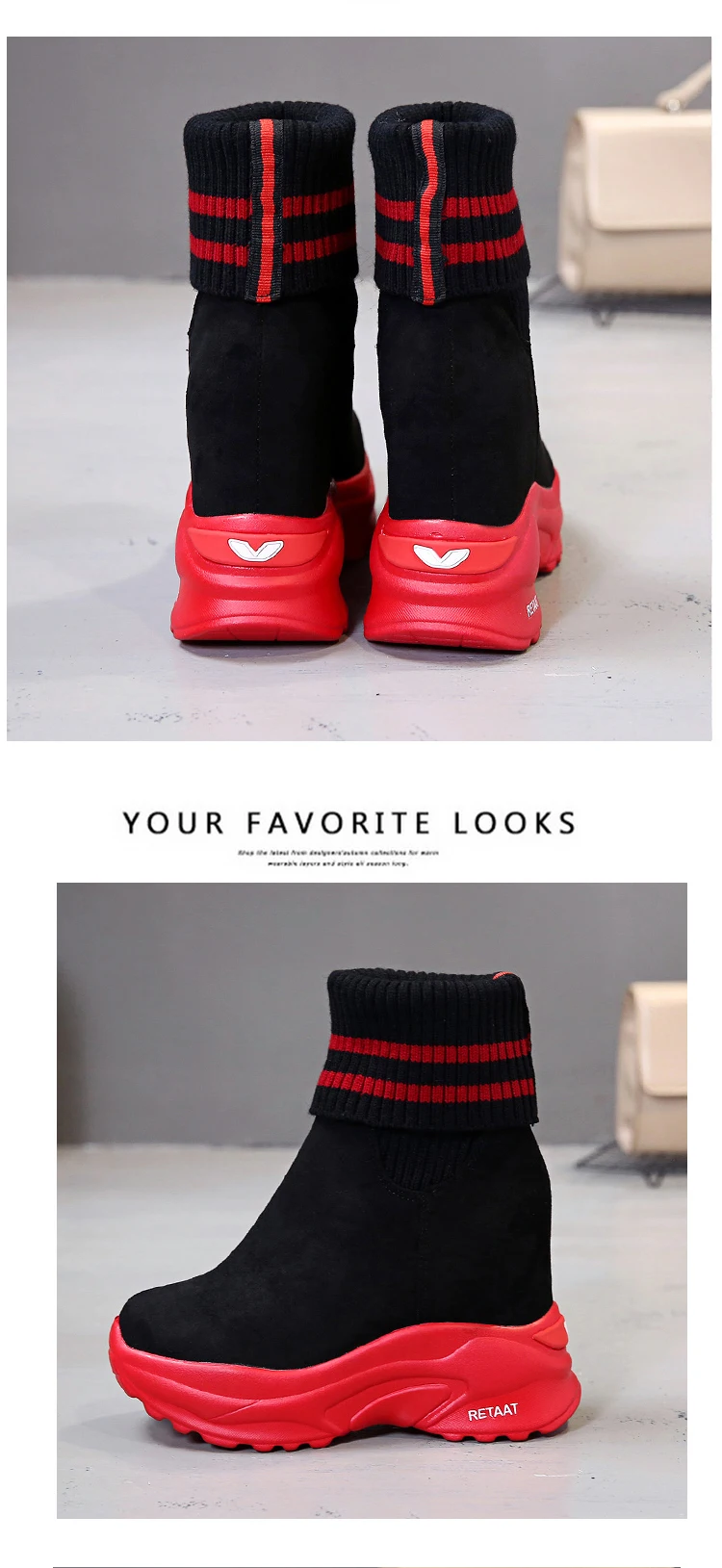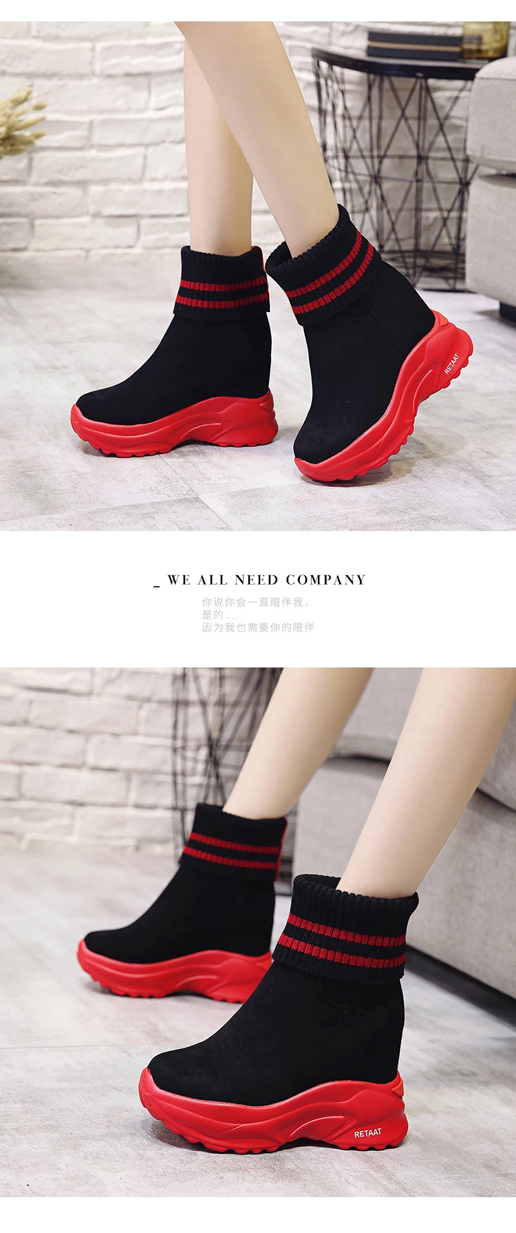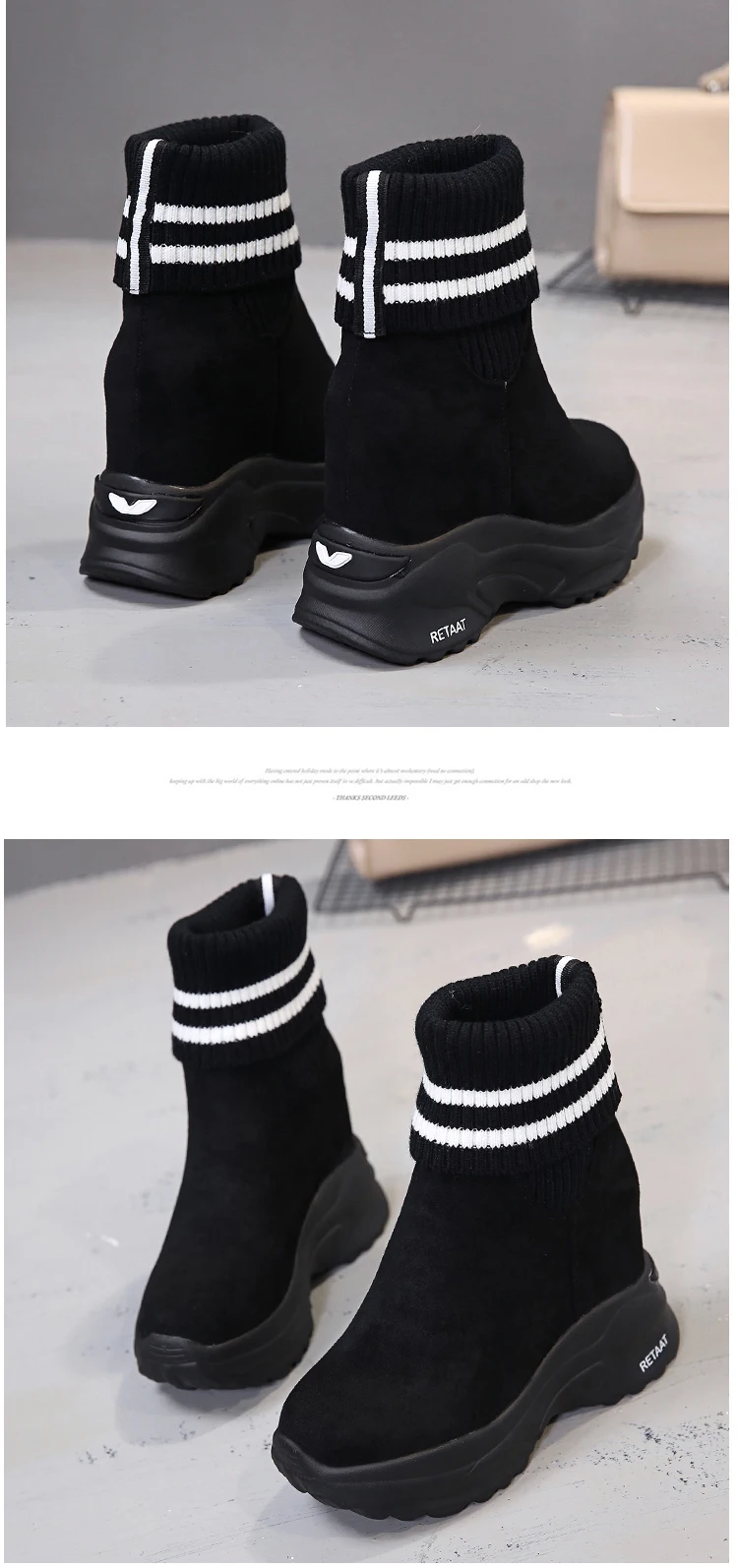 Женские ботинки на платформе, осенне-зимние короткие ботинки из флока, Нескользящие, 2020