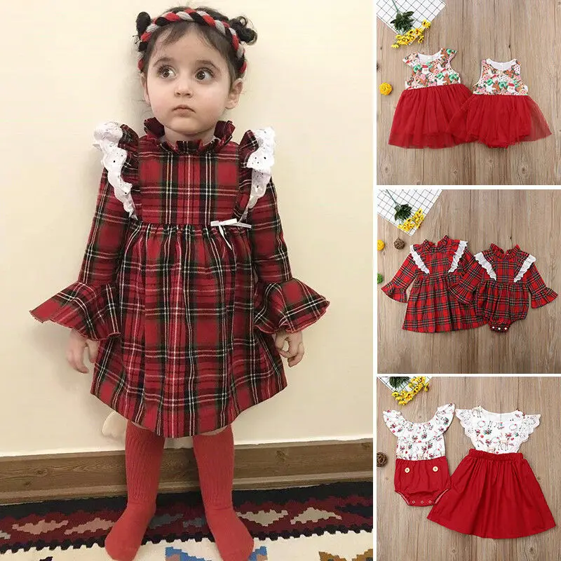 Рождественский костюм для маленьких девочек, мультяшное хлопковое цельное детское платье-пачка, наряд, одежда для сестры, Рождественская одежда