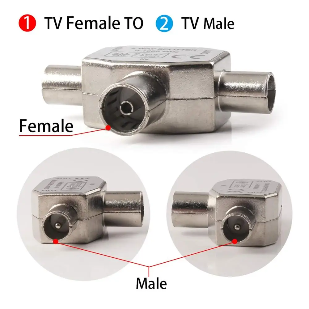 2-полосный сплиттер для ТВ, 1 гнездовой к 2 Наружный коаксиальный цифровой сигнал, антенный сплиттер