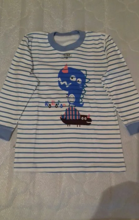 Классная пижамка, на 1 г и 8 месяцев чутка великоват, в целом все хорошо. Яркая, как на картинке, хлопок, без ниток, хорошо сшита. Пришла очень быстро.