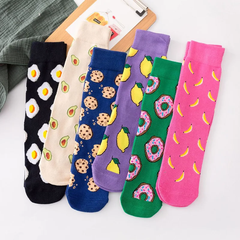 Милые женские носки с фруктами, каваи, печенье, лимон, Пончик, бана...