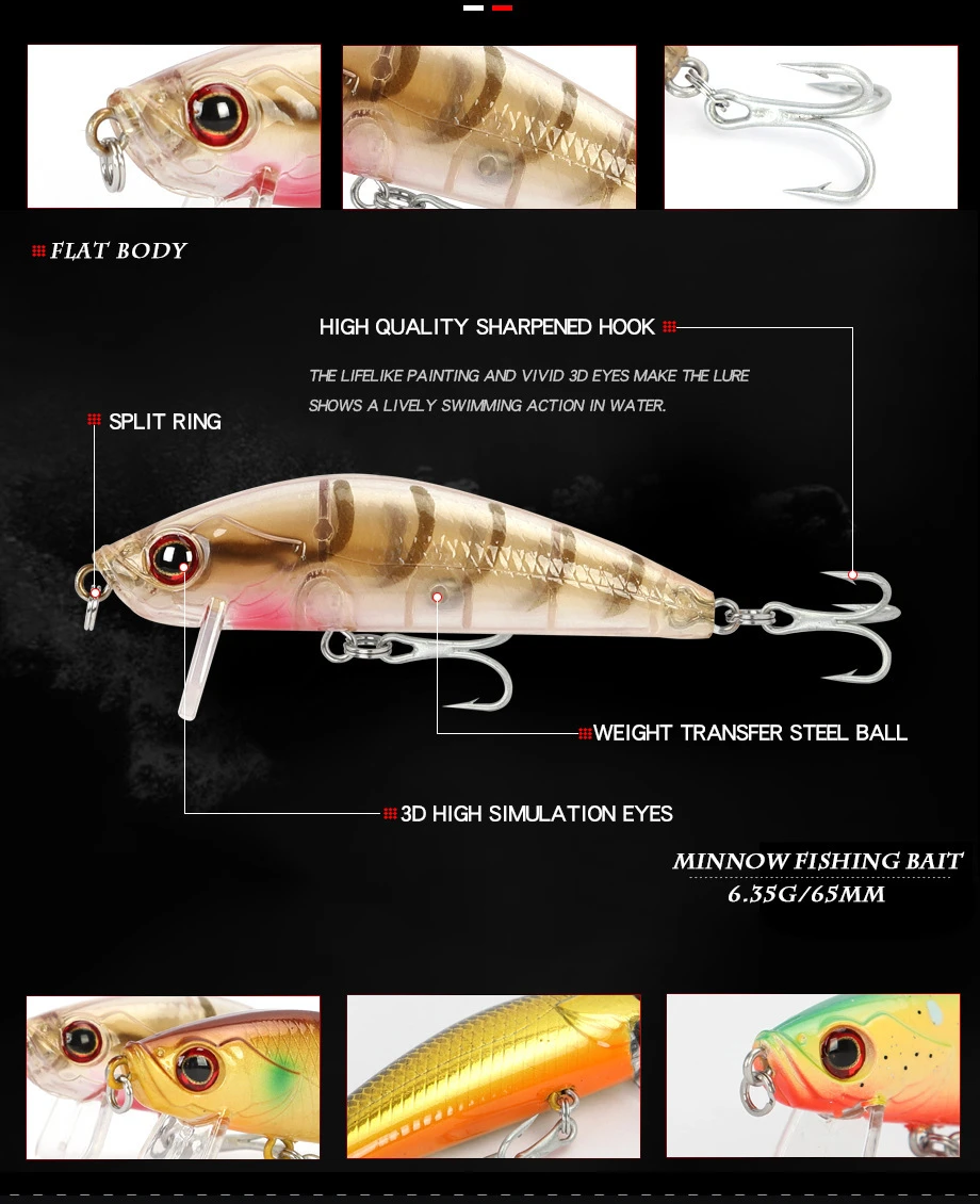 Плавающая рыболовная приманка в виде гольяна, 6,5 см, 6,5 г, пластиковый воблер с объемными глазами, жесткая искусственная приманка, для ловли форели, ловля щуки и карпа снастей