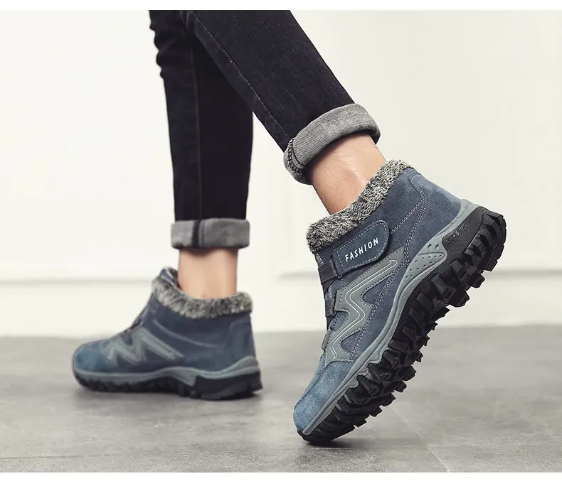 LUFUMAзимние мужские ботинки с мехом; коллекция 2020 года; теплые кожаные зимние ботинки; Мужская зимняя повседневная обувь для работы; кроссовки с высоким берцем; резиновые ботильоны
