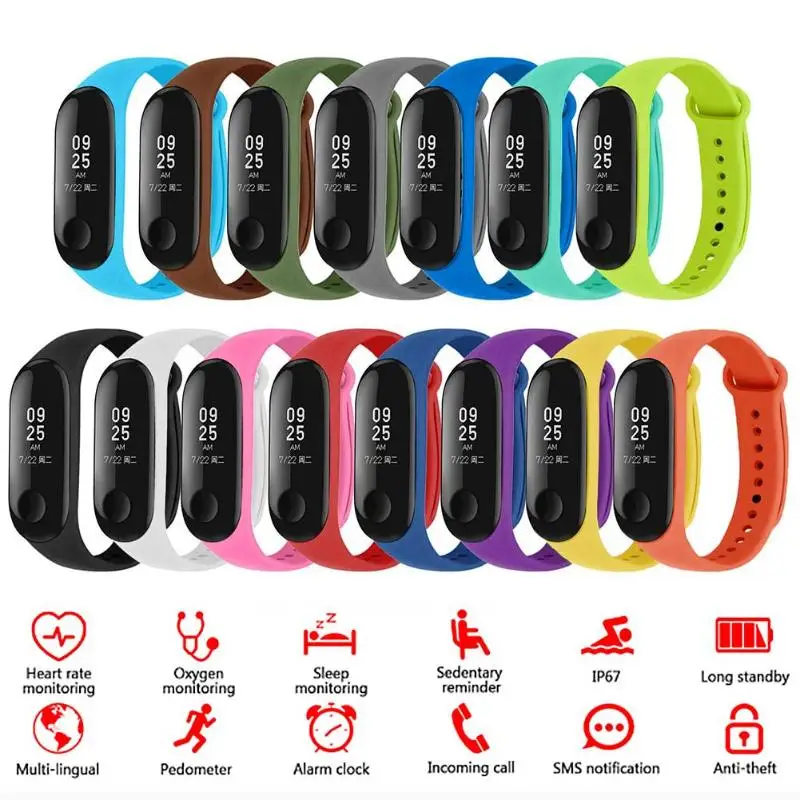 Ремешок силиконовый для Xiaomi mi Band 3 Mi Smart Band 4, 15 цветов