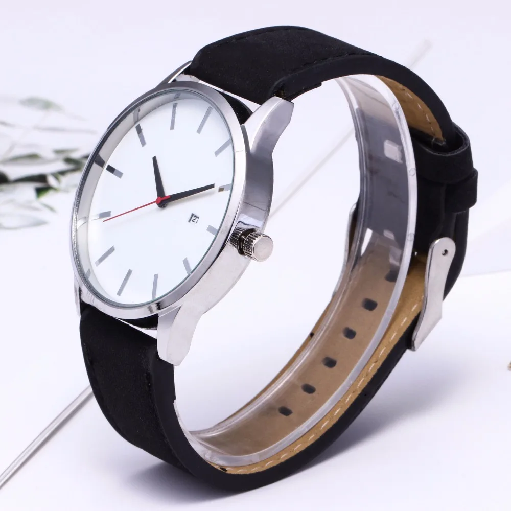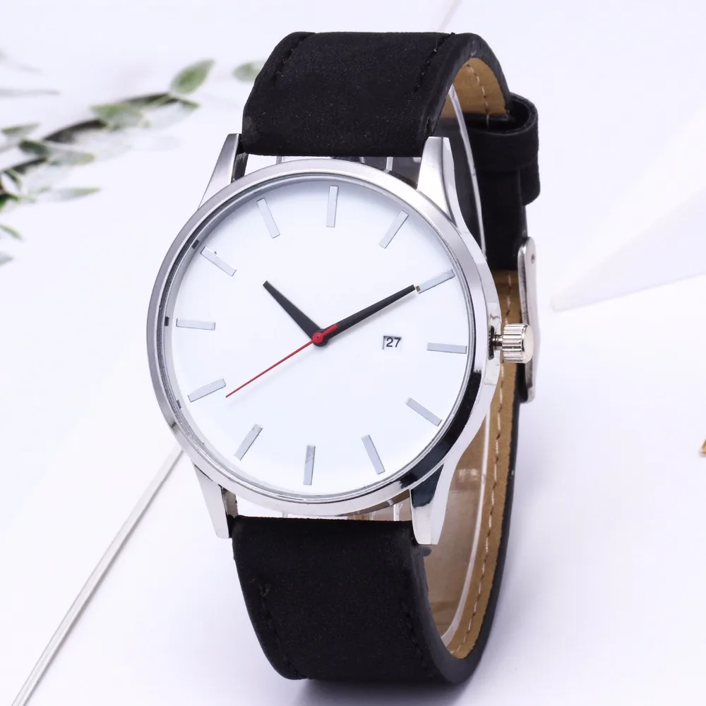 Часы наручные мужские кварцевые с большим циферблатом, модные деловые повседневные спортивные, с кожаным ремешком