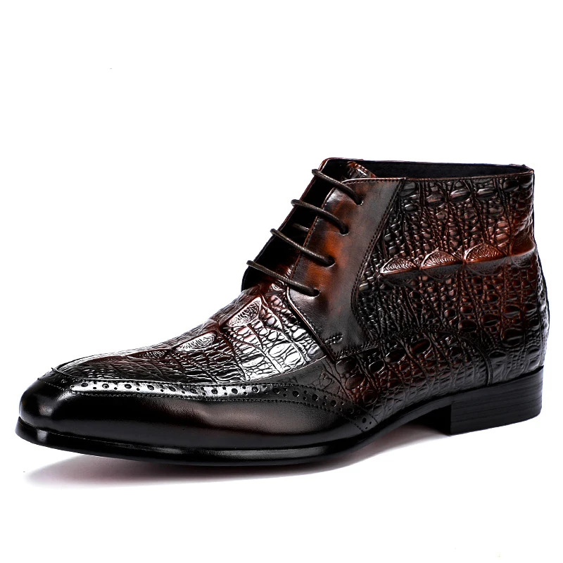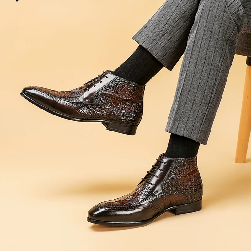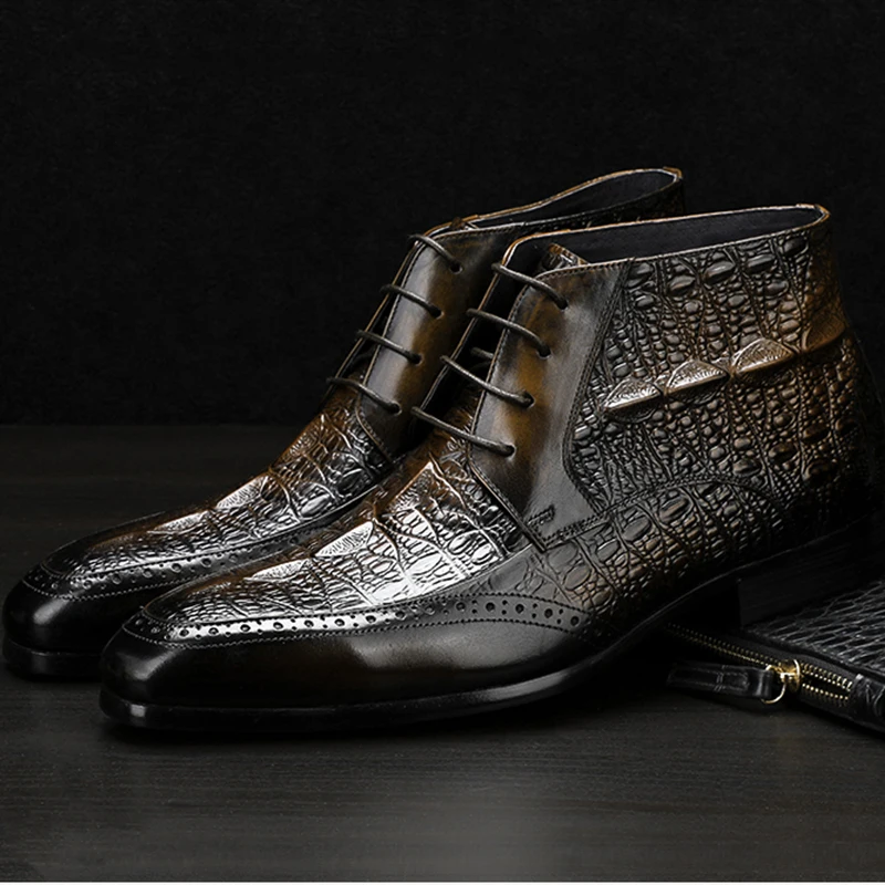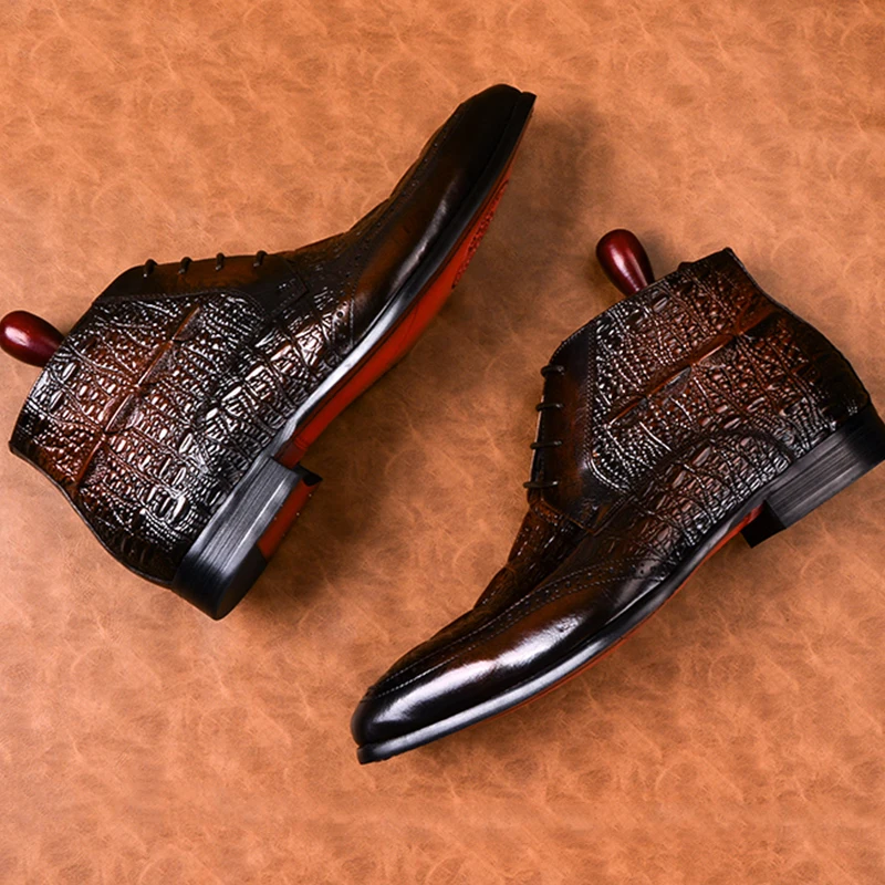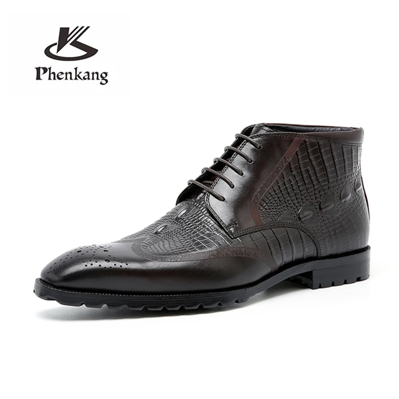 Мужские ботинки-челси Phenkang из натуральной кожи с крокодиловым узором, зимние резиновые полуботинки, броги, обувь на плоской подошве, весна 2022