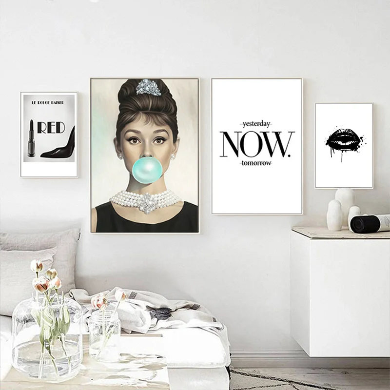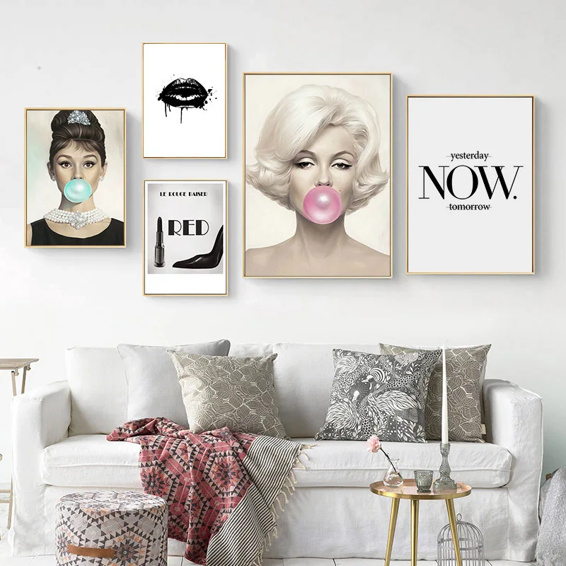 Черно-белая сексуальная холщовая живопись для девочек, модный посте...