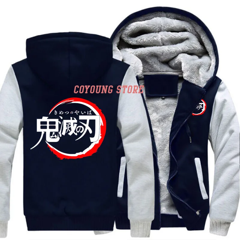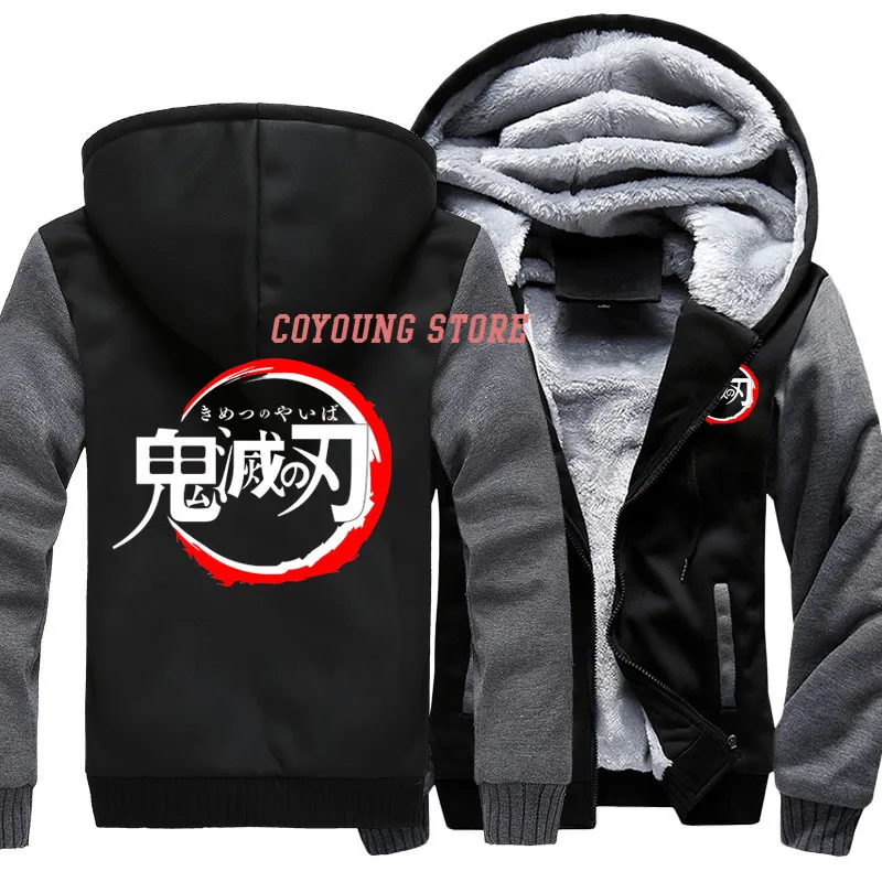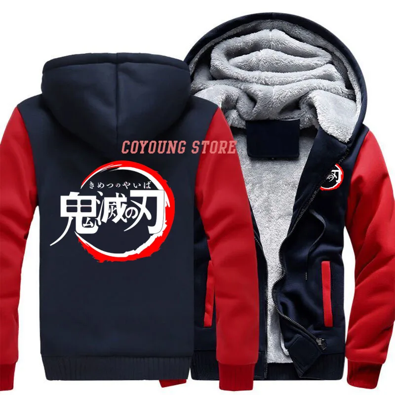 Мужская толстовка с капюшоном и молнией для косплея из аниме рассекающий демонов, утепленная толстовка, пальто, верхняя одежда американского размера