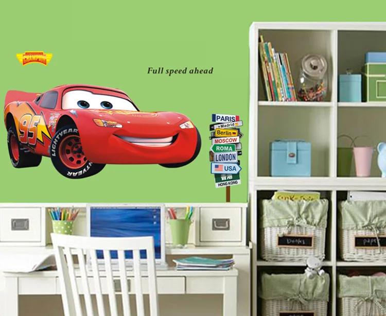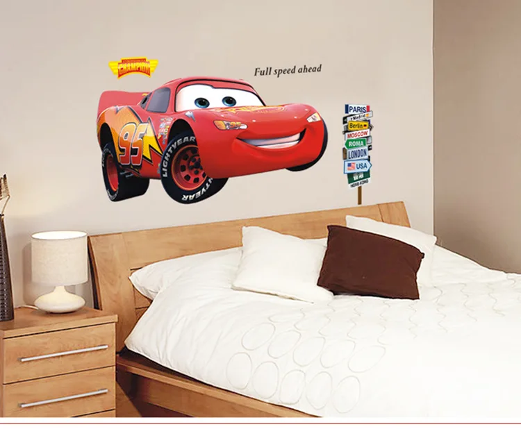 Молния 3D Мультяшные автомобили Настенный декор наклейки для мальчика спальни самоклеящиеся обои для детской комнаты плакат роспись молния Настенная Наклейка