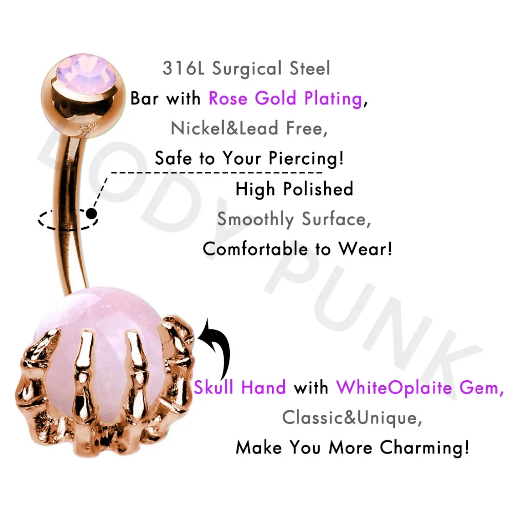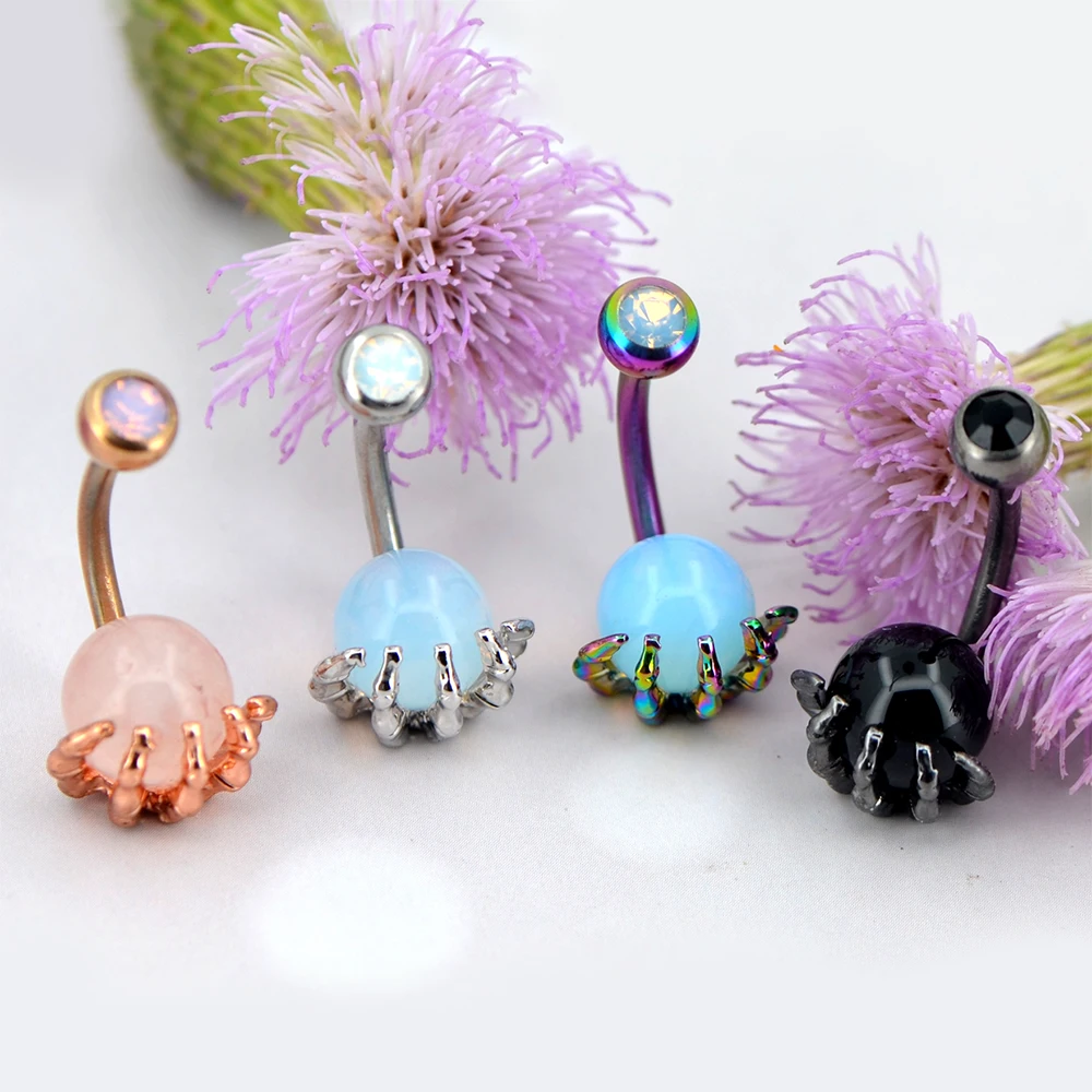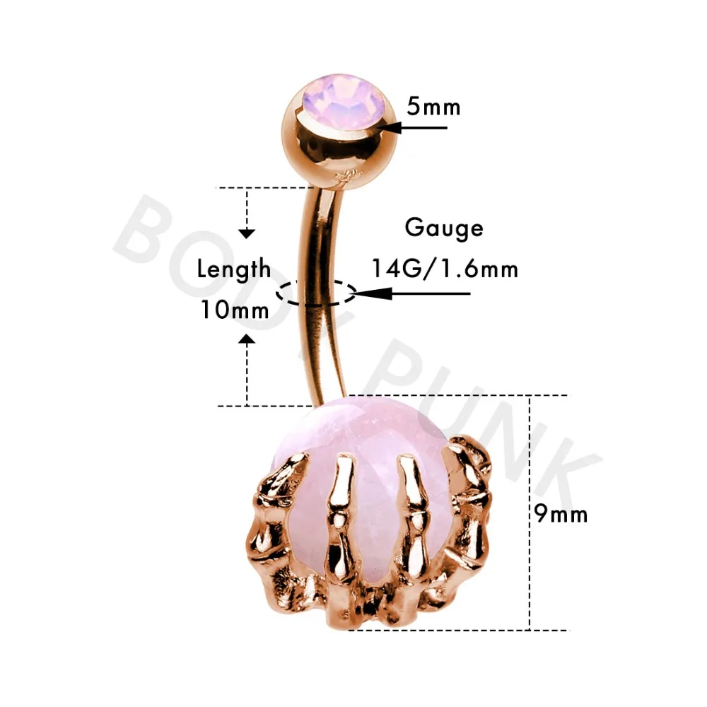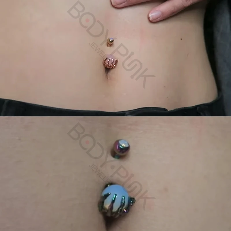 Набор для пирсинга пупка, 14 г, из хирургической стали 316L, розового цвета, с опалитами