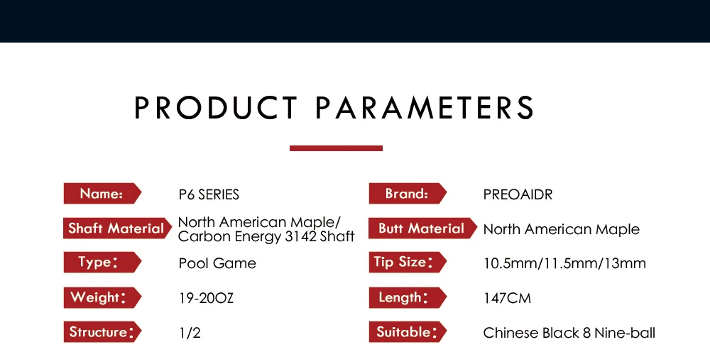 Бильярдный Кий PREOAIDR P6, 10 мм, 11,75 мм, 12,75 мм
