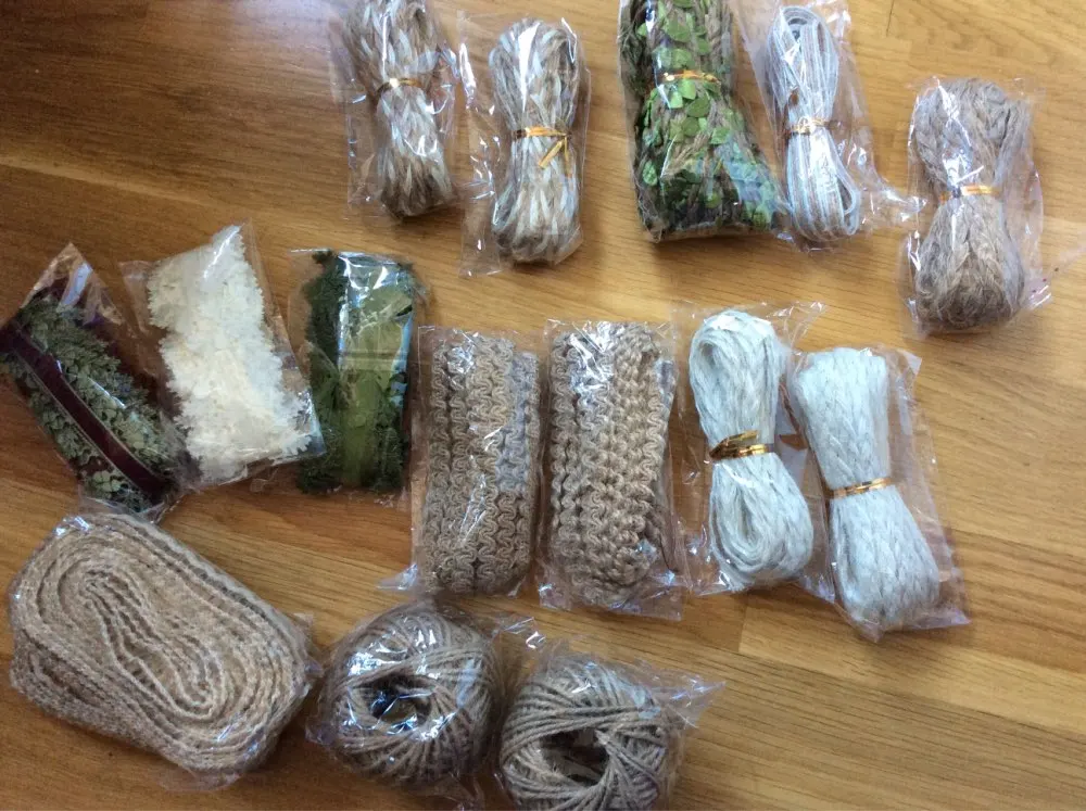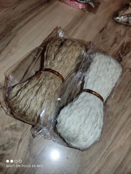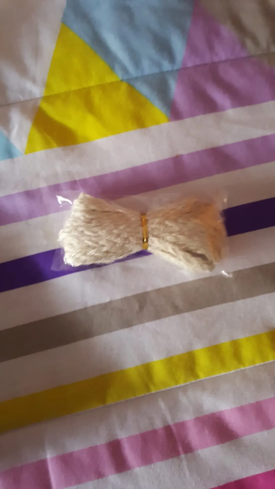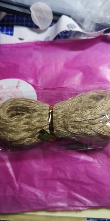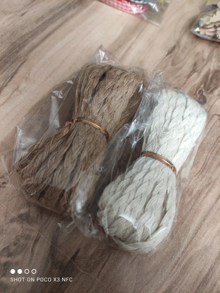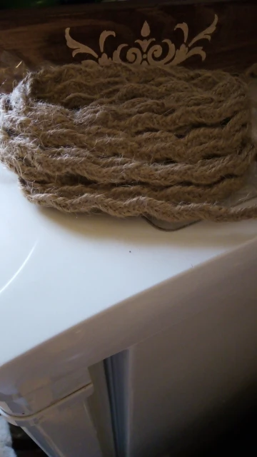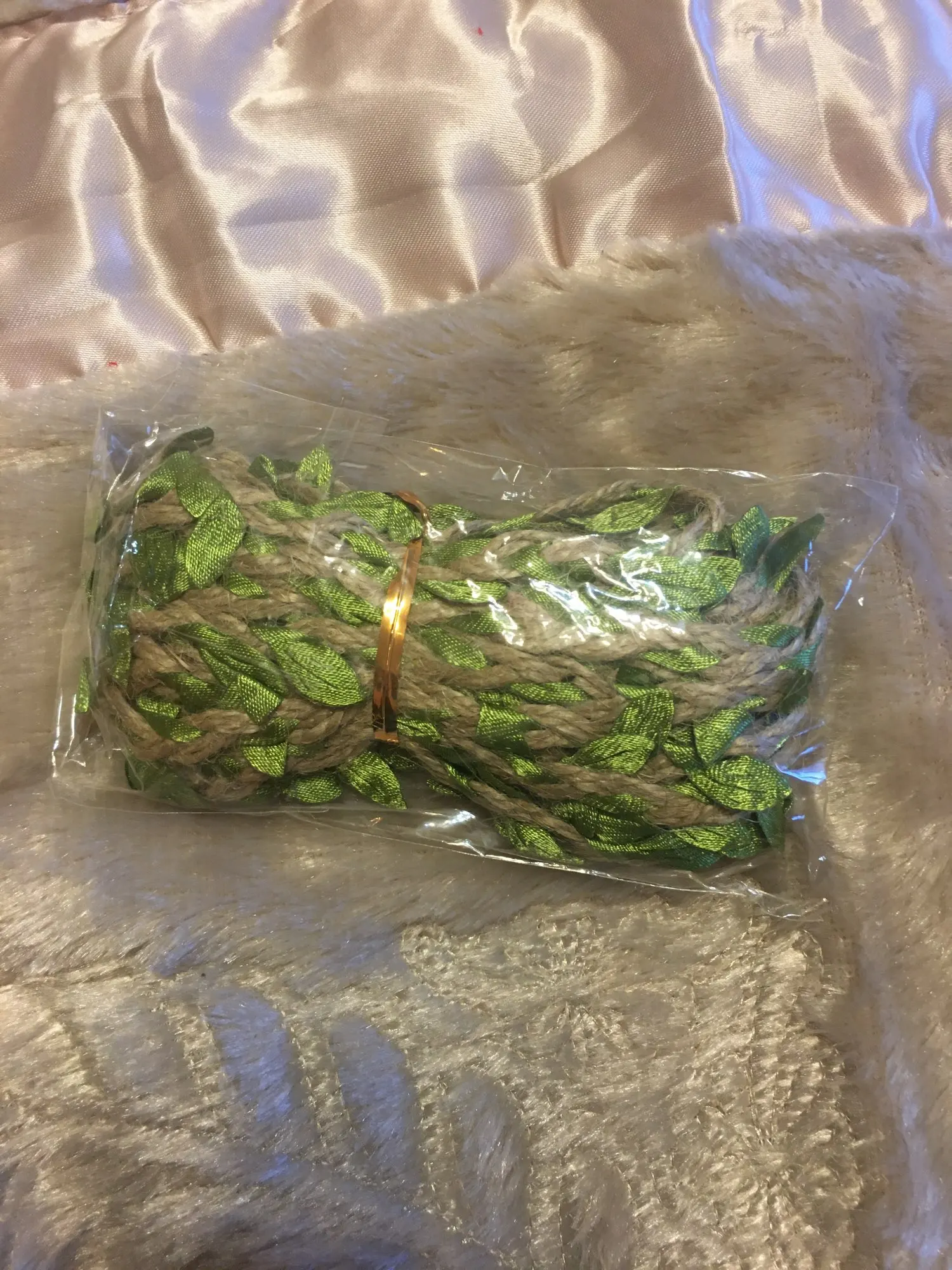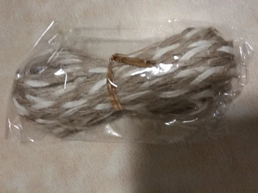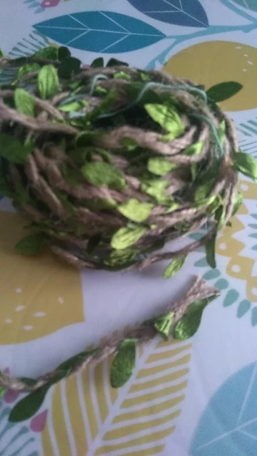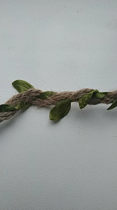 Смесь веревки и фольгированной ленты с деталями фольгированных ребер, веревка выглядит как веревка в стиле мешковины... Немного разочарован, потому что он был навалом в упаковочной упаковке, все листы скручиваются, сгибаются, толкаются, Я разместил его в кругах, я узнаю, хороший ли внешний вид и пригоден ли он к использованию или если он размораживает пар перед использованием. Я планирую использовать его для того, чтобы моя настенная стойка была создана 100% ручной работы с веткой дерева, отшлифованной и окрашенной в белый цвет