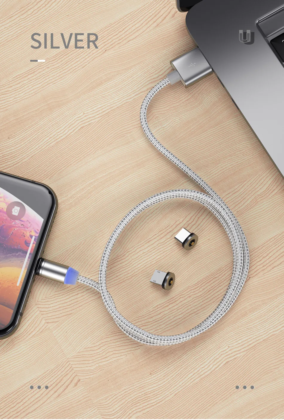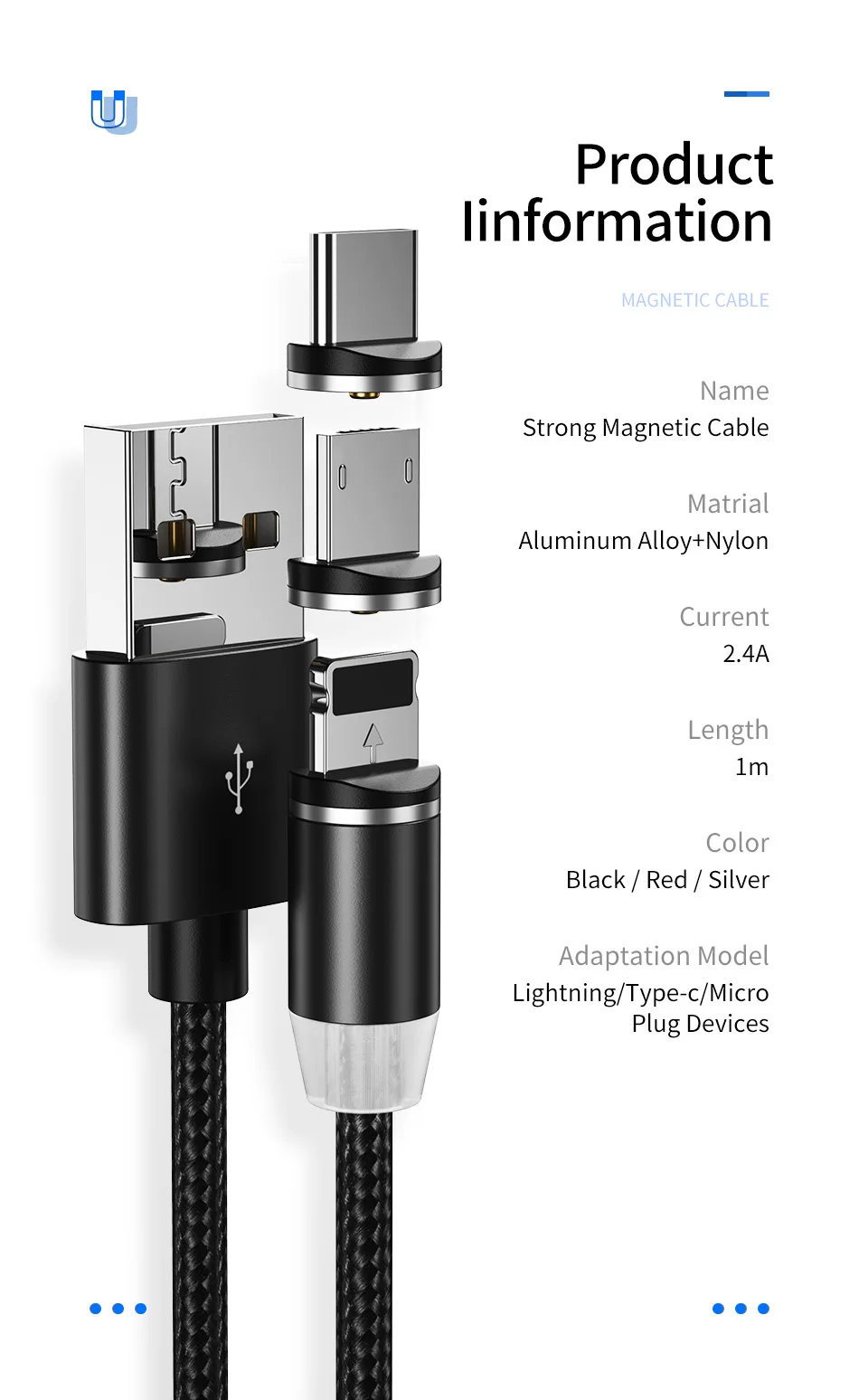 Feature360 Degree Rotate Round LED Magnetic Cable