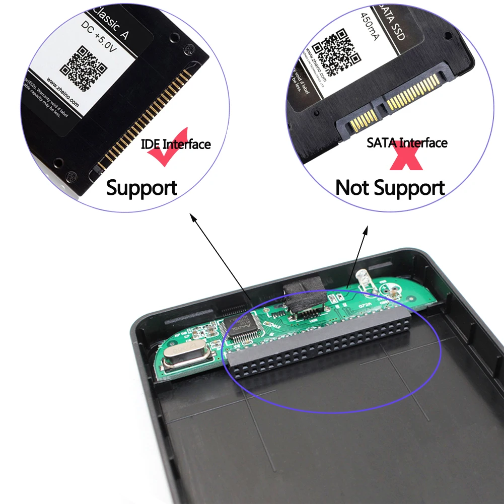Чехол для внешнего жесткого диска Zheino, 2,5 PATA к USB 2,0 HDD корпус для IDE SSD HDD с бесплатным инструментом