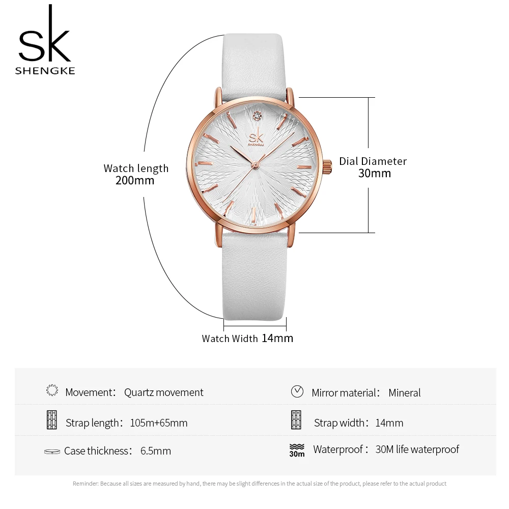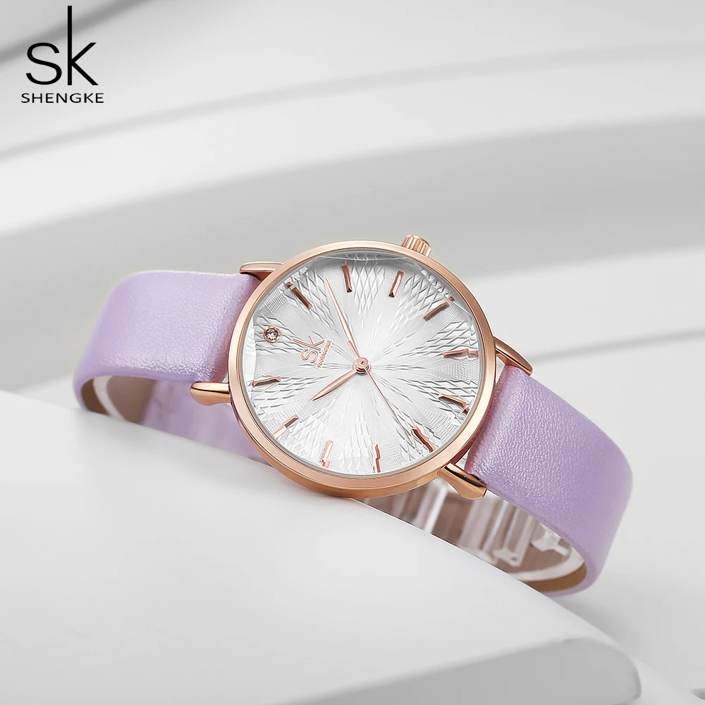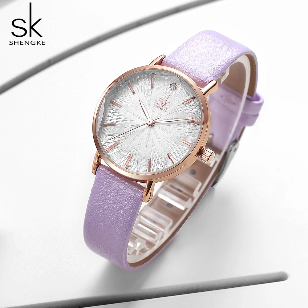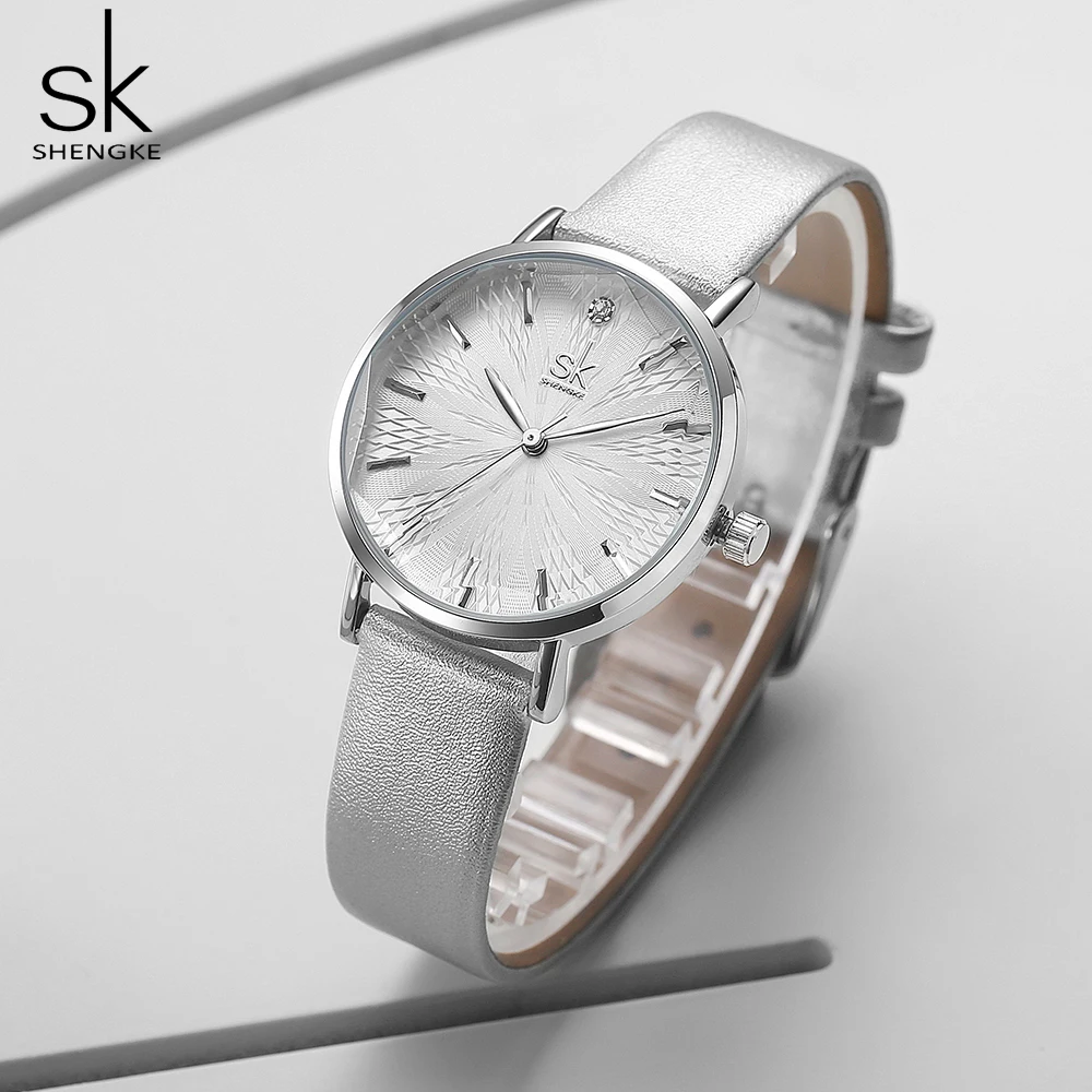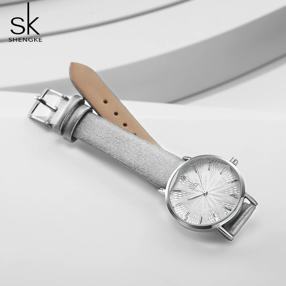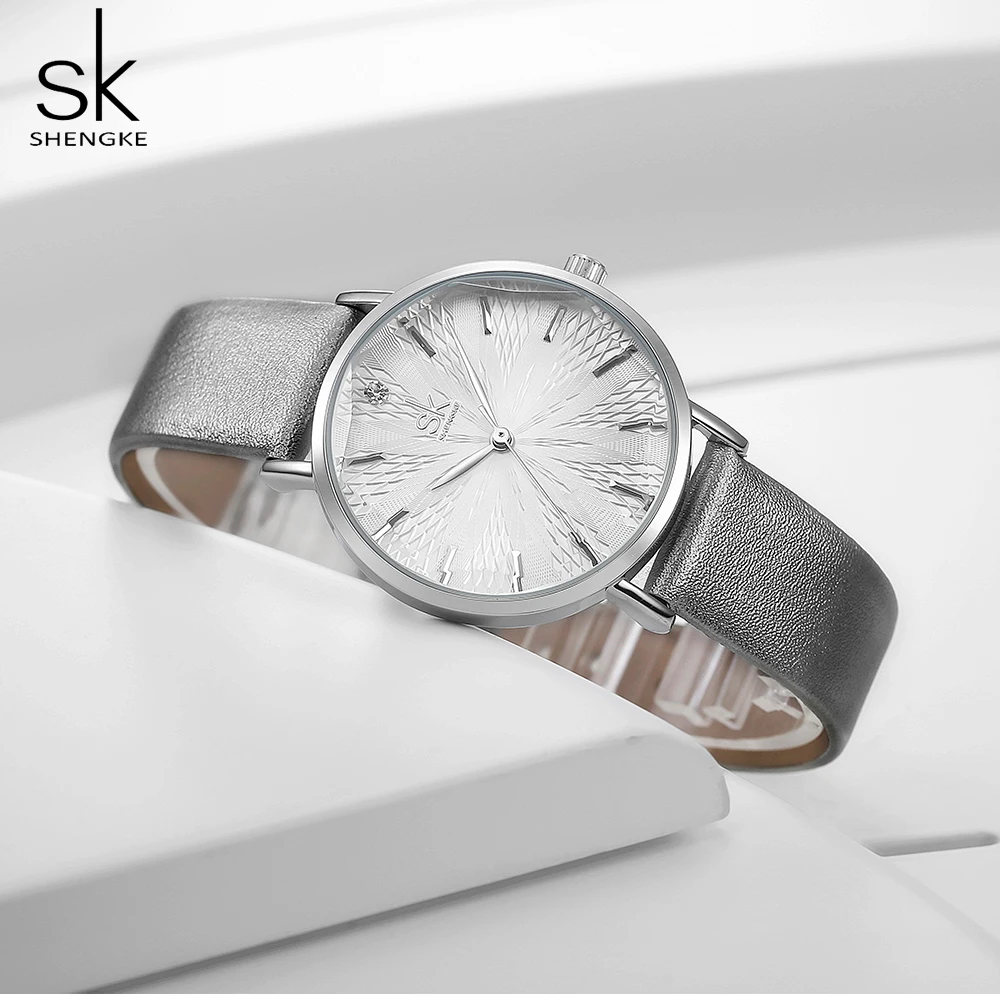 Часы наручные Shengke женские кварцевые, модные повседневные аналоговые круглые, с кожаным ремешком, элегантные