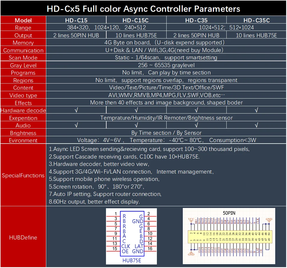 Huidu C35 HD-C35 поддержка 1024*512 пикселей 2 lins 50 PIN HUB