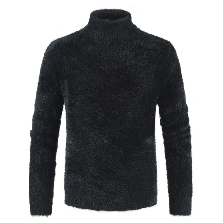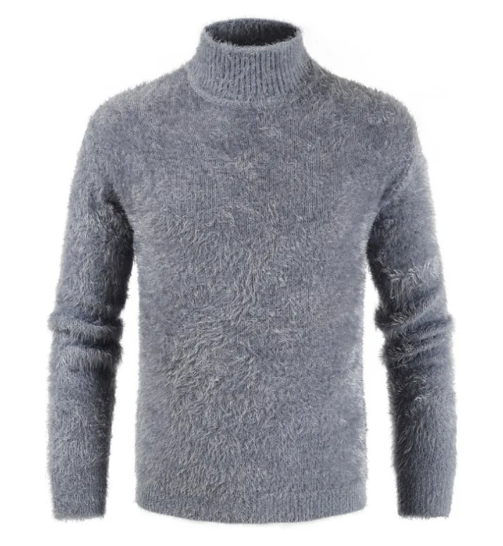 Мужской вязаный пуловер из мохера, с длинным рукавом и высоким воротником