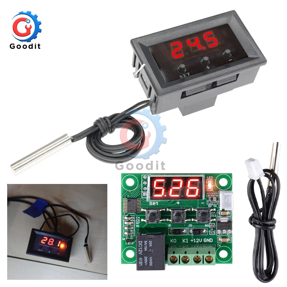 Цифровой термостат W1209, регулятор температуры постоянного тока 12 В, терморегулятор для инкубатора с NTC датчиком, чехол температура отопления охлаждения