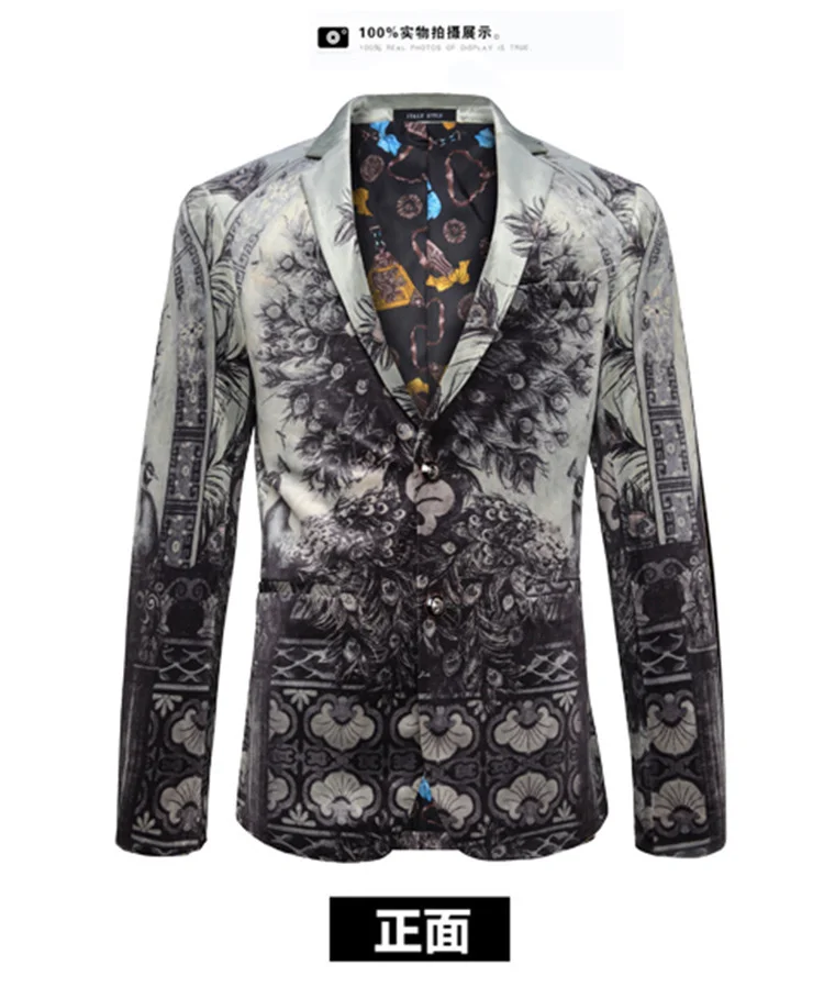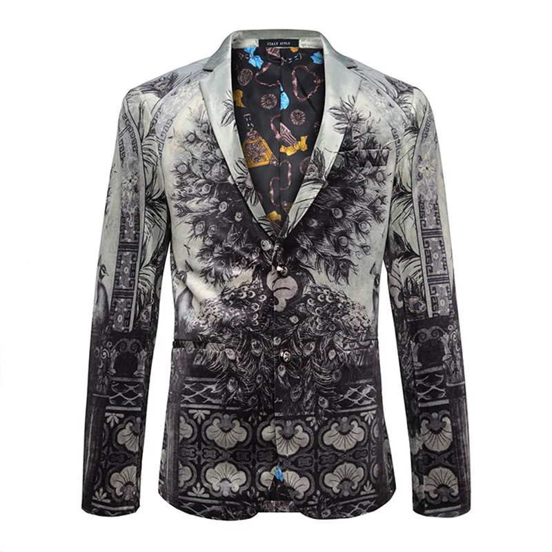 Повседневная одежда, мужская облегающая Клубная одежда с принтом животных, блейзер для мужчин, мужская одежда, 2019