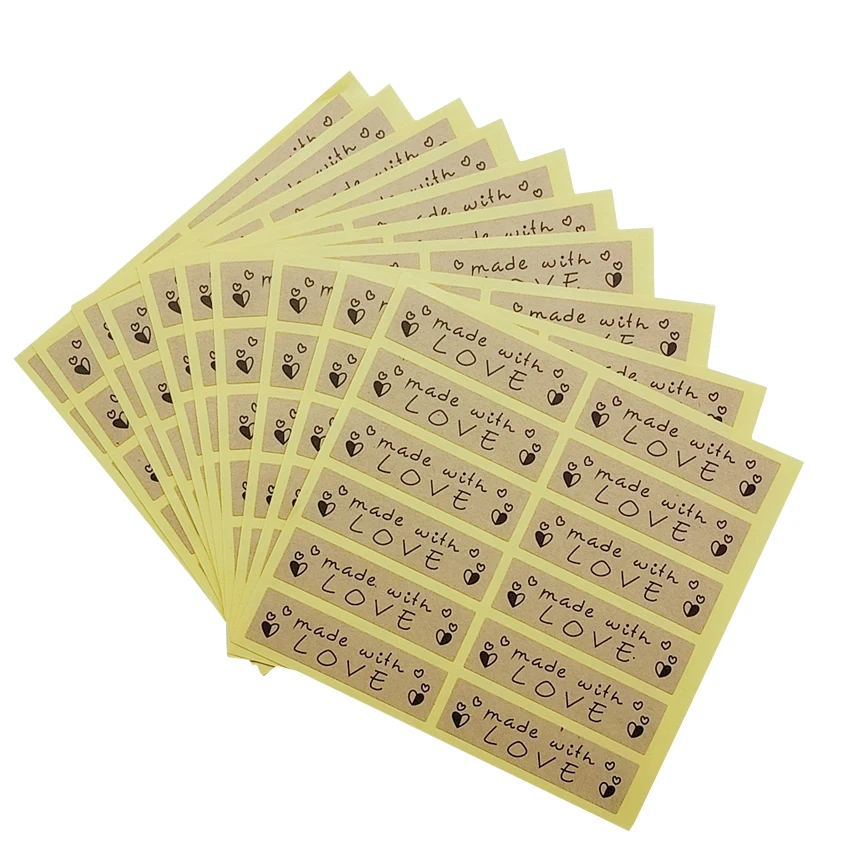 120 шт.лот, ручная работа с любовью, крафт-бумага, сердца, наклейки...