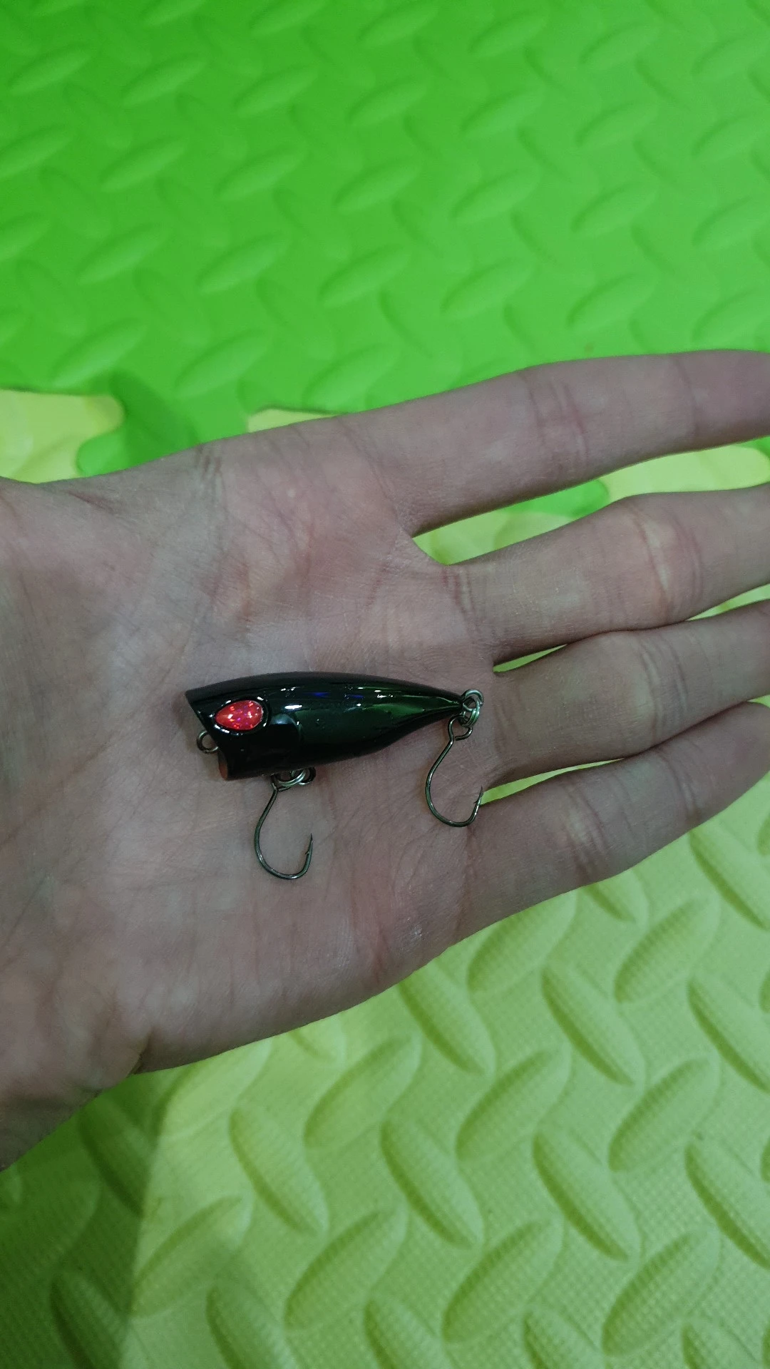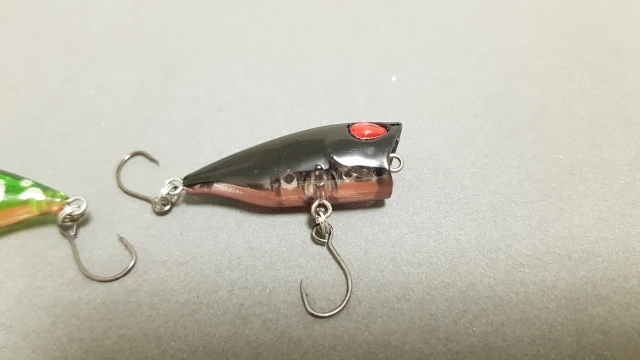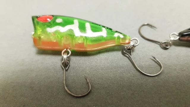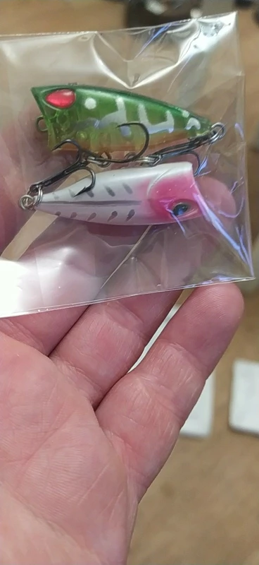 50 дней до Москвы. Почта России однако. Попер выполнен аккуратно, красиво,крючки острые ,безбородые , маленький шарик издаёт негромкий звук.На воде плавает горизонтально без наклона назад,. Кажется что бульканья при проводке не будет, или тихо. Попробую не воде весной как есть,можно поставить назад тройник с опушкой, убрать центральный крючок. Рыба рассудит кстати вариант поплапоппера не исключаю.