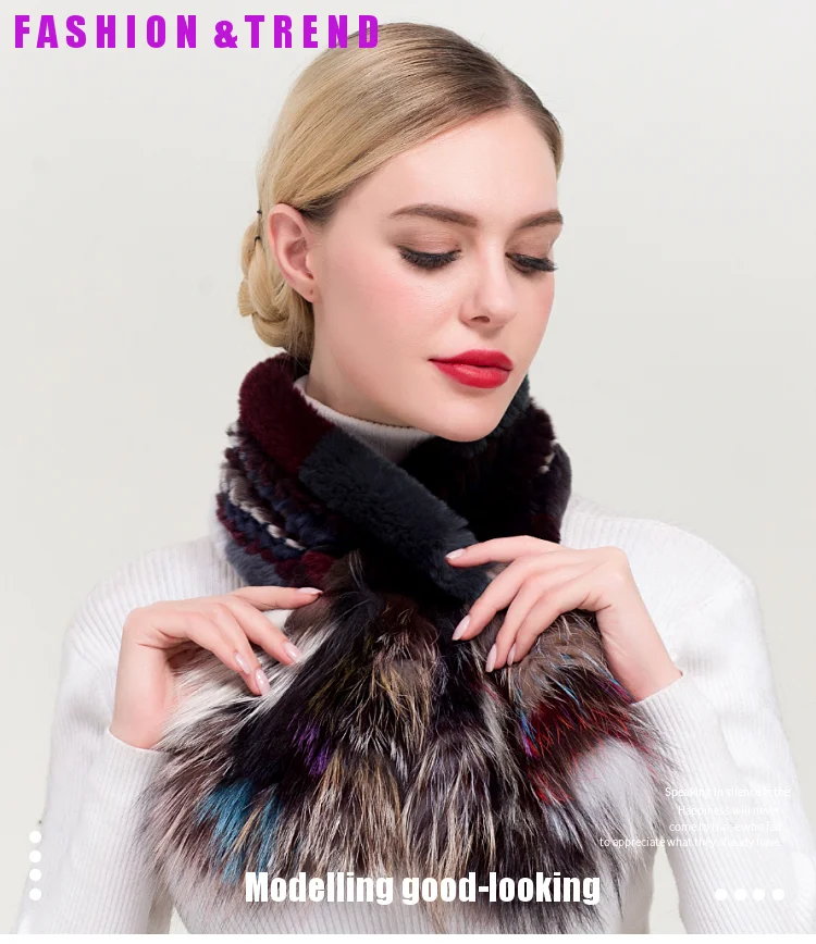 Новинка зимы 2019, оригинальные женские модные шарфы ZDFURS из натурального серебристого лисьего меха, разноцветные вязаные шарфы