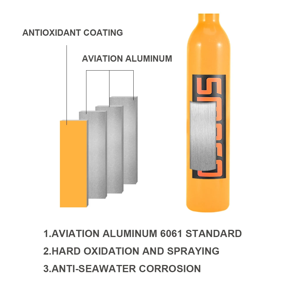 -Компактный портативный легкий, легко носить с собой.-Дышащие подводные погружения с полной свободой.-Поддерживает 3 типа надувания.-Изготовлен из авиационного алюминиевого материала и соответствует стандартам производства оборудования для дайвинга.-Сумка для хранения для дайвинга можно складывать и стирать, быстро сохнет, ткань дышащая.