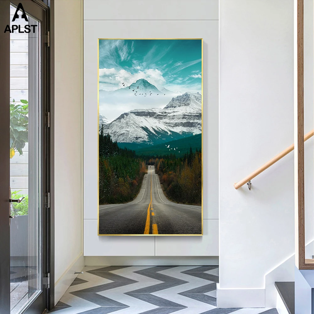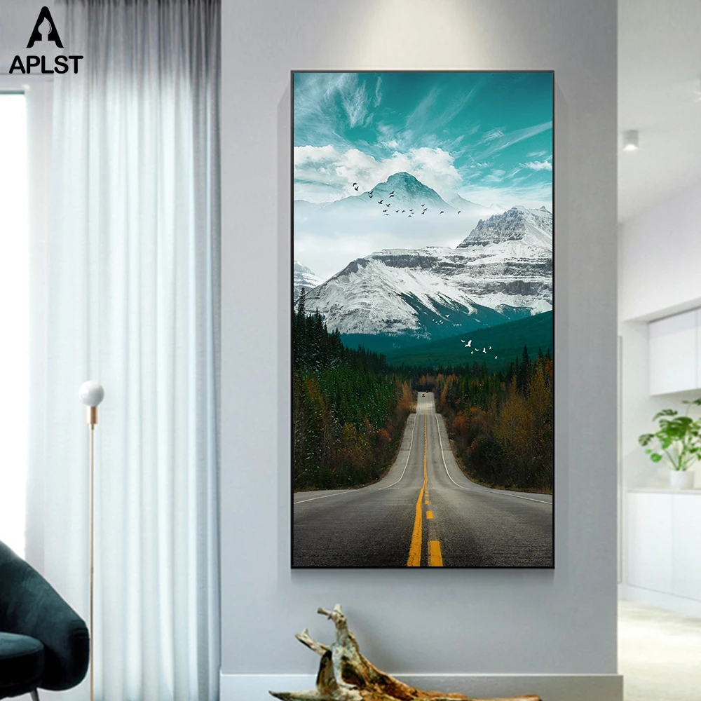 Летающие птицы, лес, холст, принты и плакаты, скандинавский ландшафт, Заснеженная горная дорога, живопись, печать на стене, искусство, домашний декор