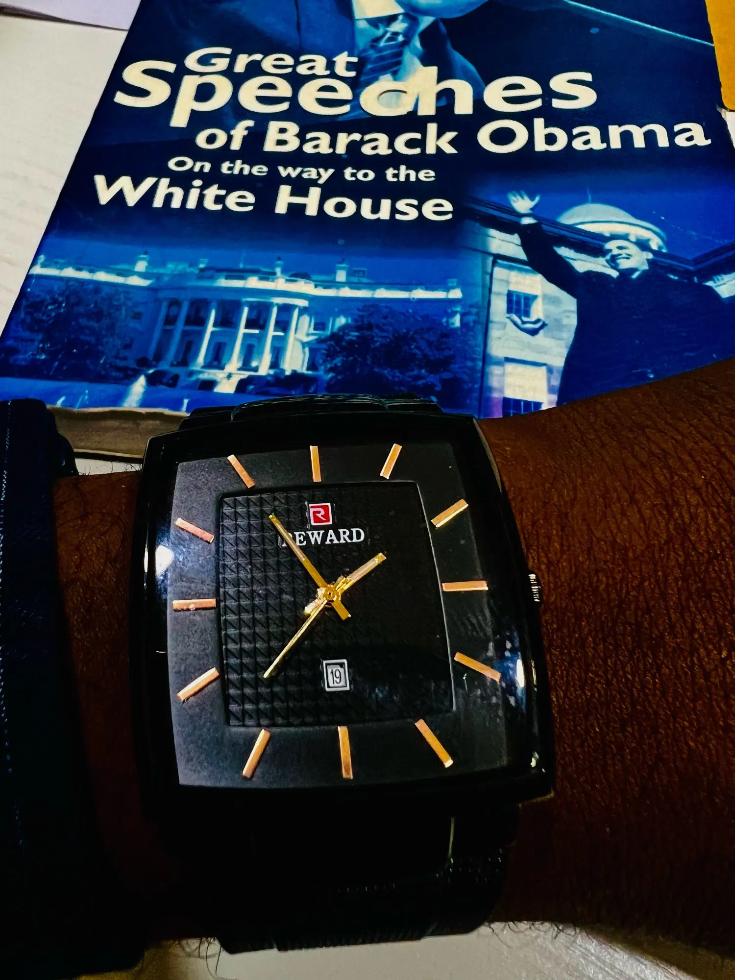 Хорошее качество часов, ремешок регулируется, на среднюю руку норм, есть еще запас ремня сантиметров 5-6. Цвет окантовки похож очень на золото (пока новые, потом хз), ремешок металл. Дата переключается в среднем положении отдельно. Под рубашку - отлично смотрится, классика.
