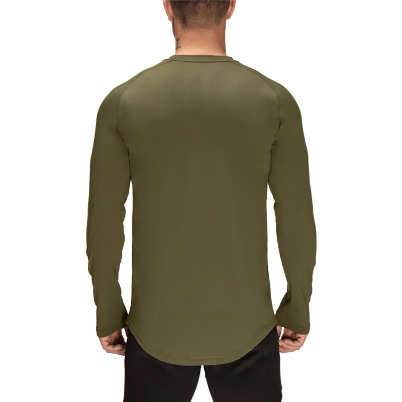 Сетчатая Однотонная футболка с длинным рукавом для мужчин, новая бр...