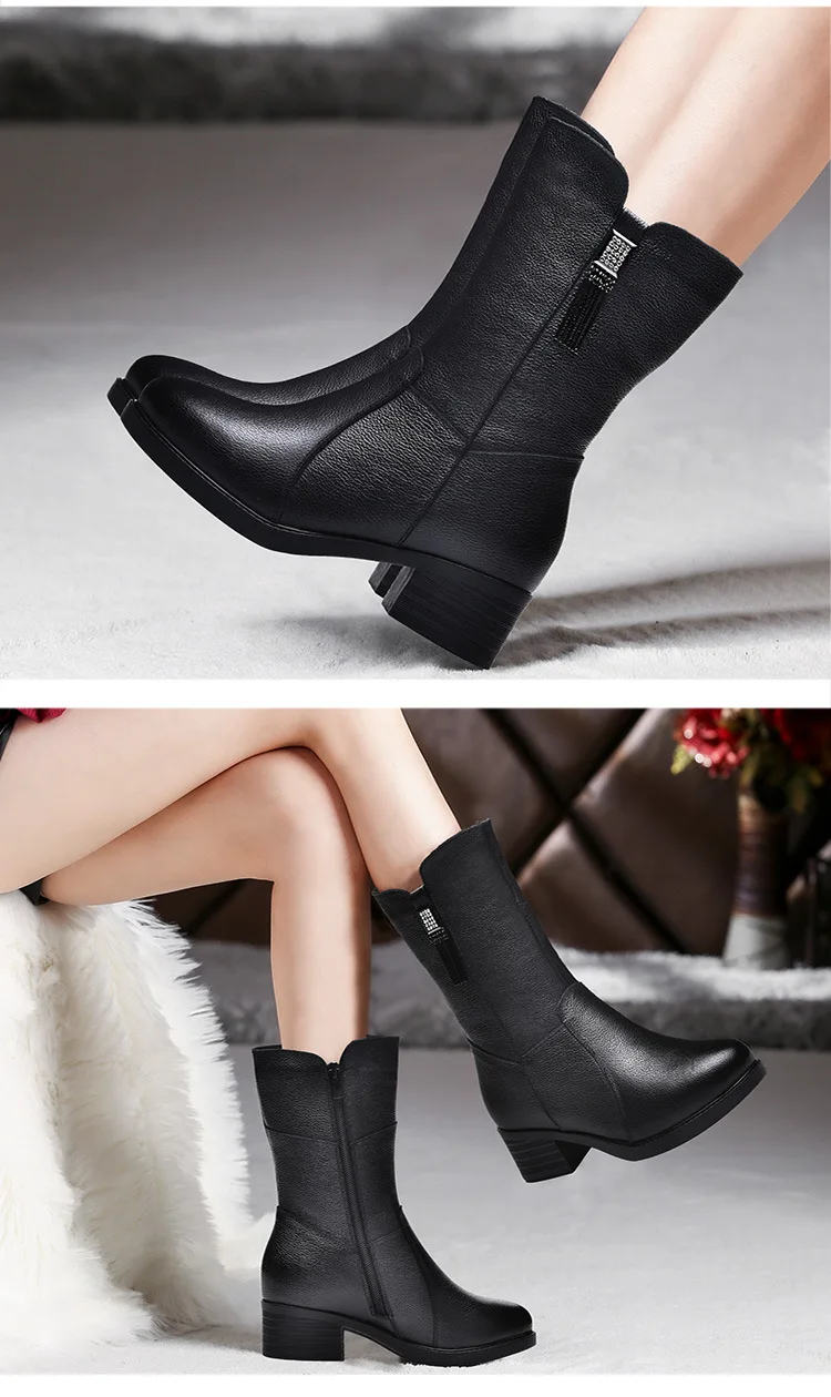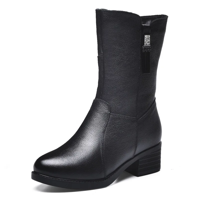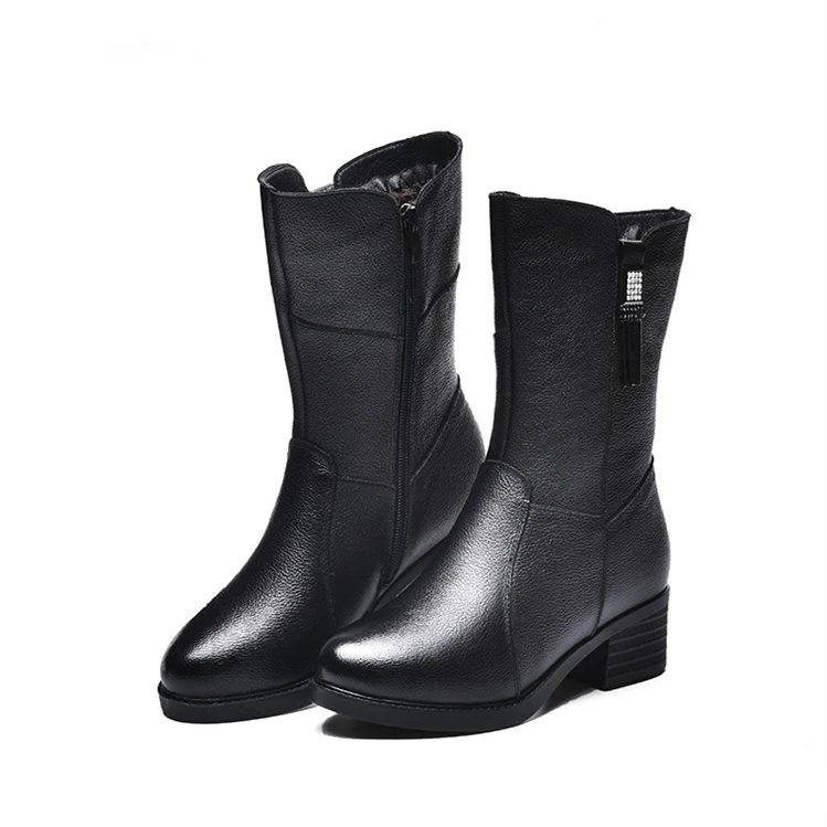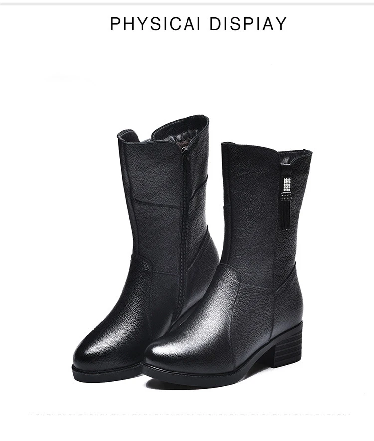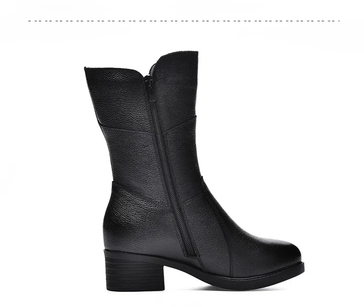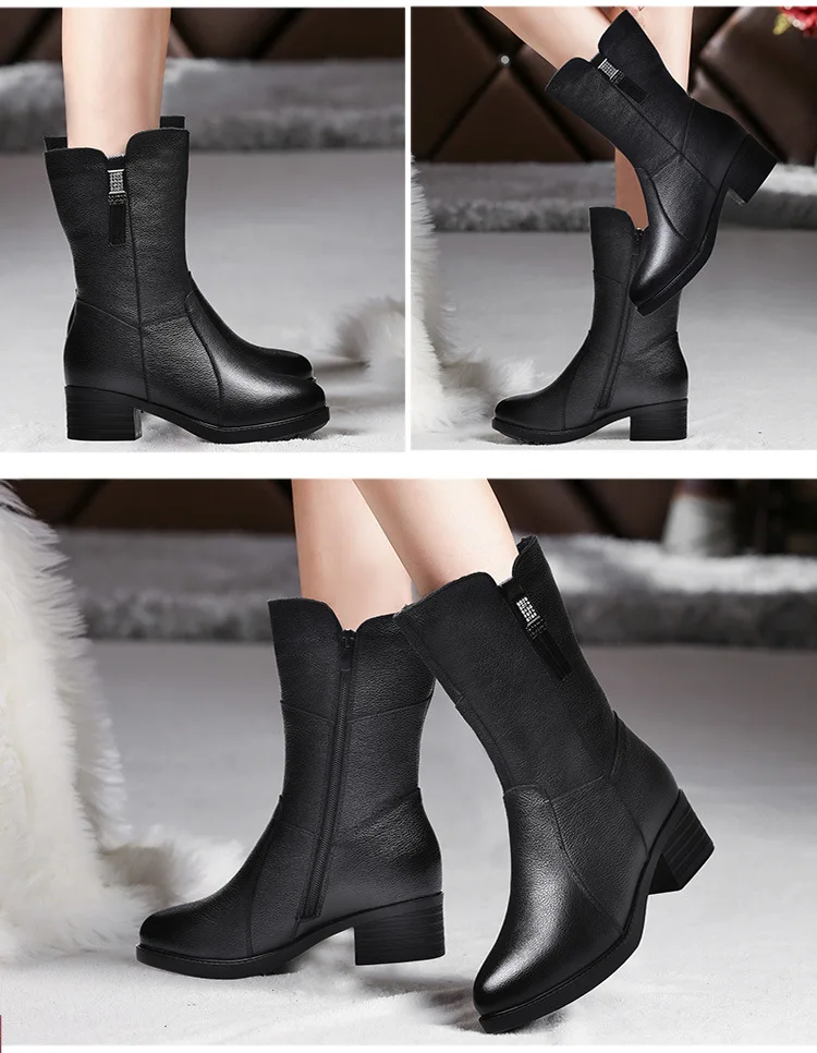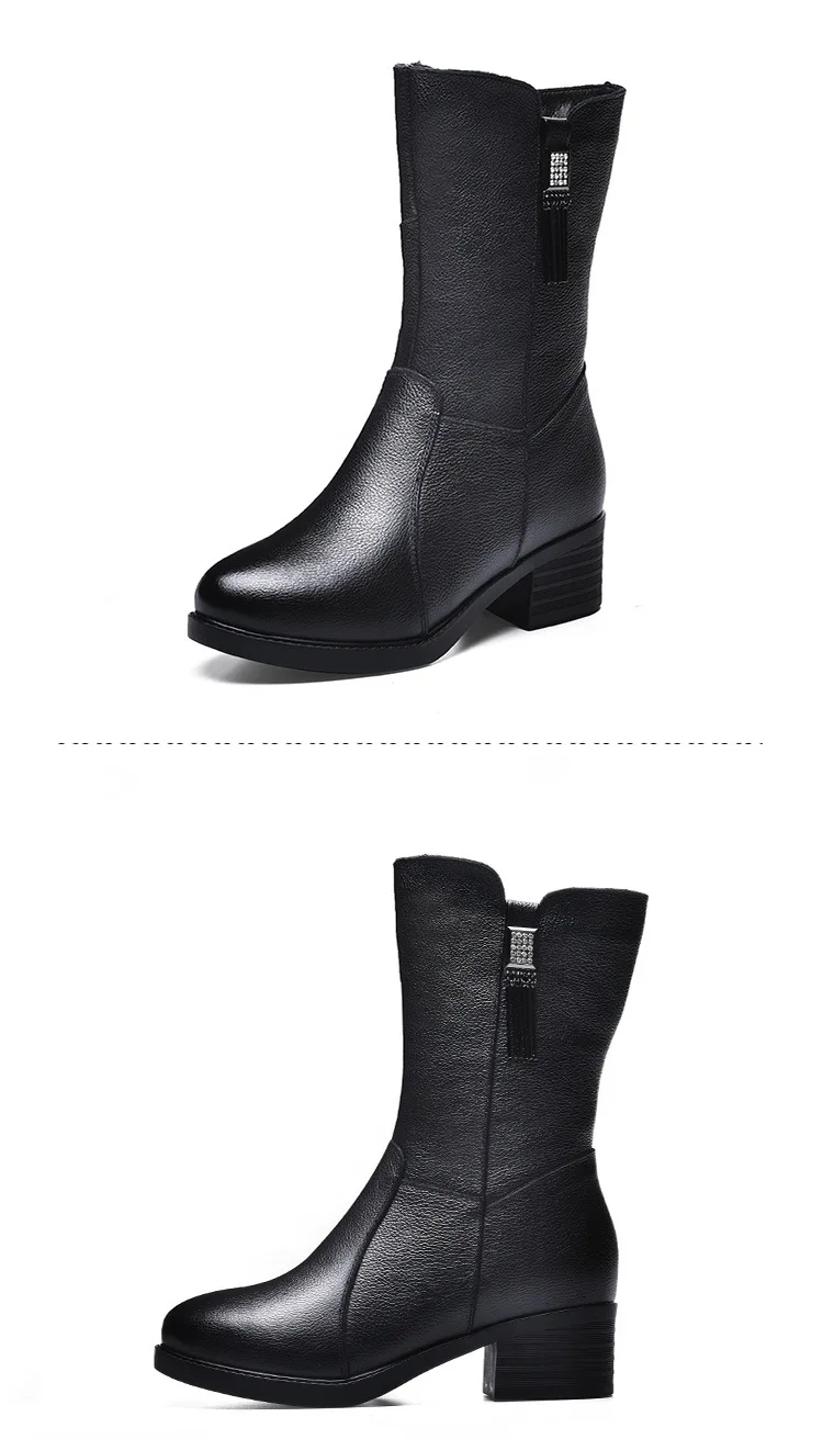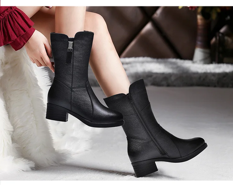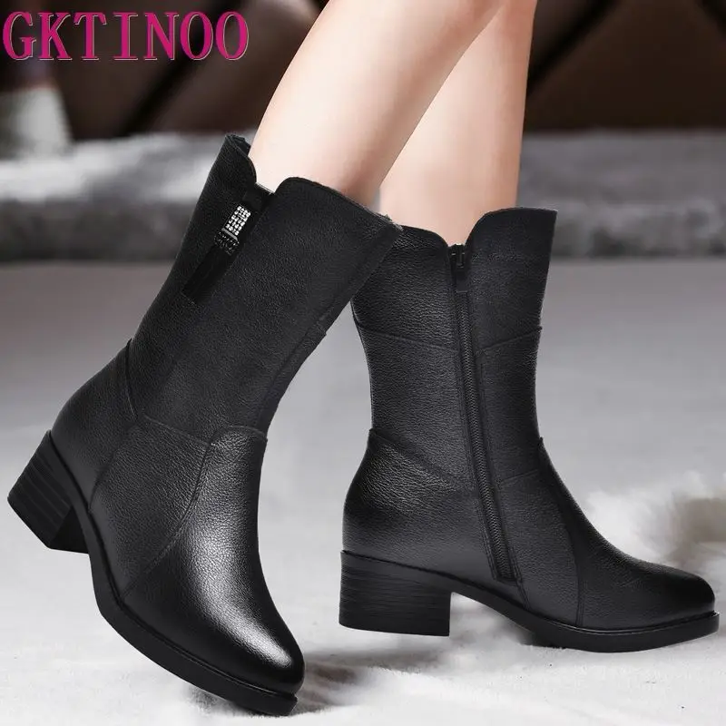 Женские сапоги до середины икры GKTINOO, теплые сапоги из натуральной кожи на среднем каблуке, сапоги до колена, Осень-зима