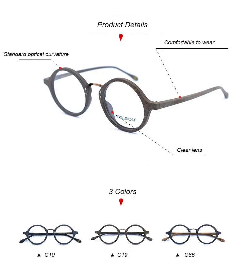 Posesion круглая деревянная оправа для очков, мужские Оптические оч...