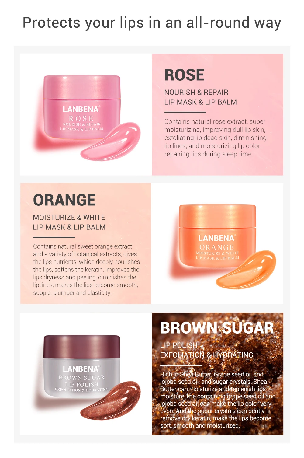 LANBENA скраб для губ маска для сна бальзам для губ отшелушивающий крем для губ увлажняющий питание восстановление тонких линий Уход за губами